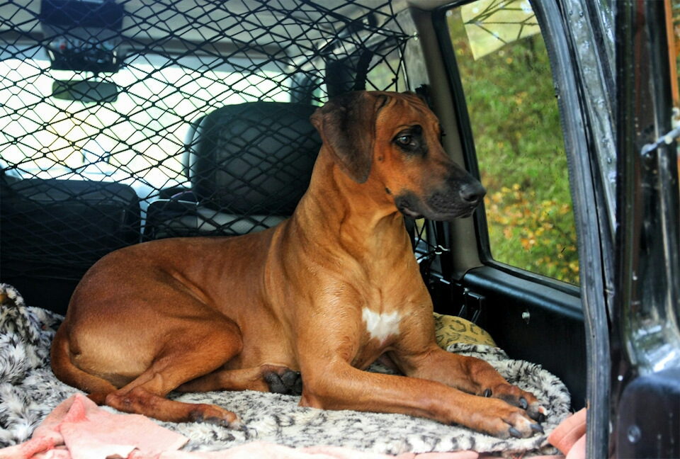 как собаку возите? на заднем сиденье или в багажнике, может в клетке?