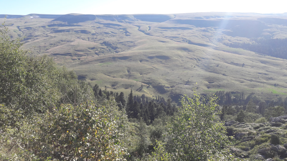 К слову ходить по просторам Лаго-Наки оказалось не намного проще, чем взбираться по склонам гор. Хоть нагорье достаточно плоское и без особых спусков-подъемов, но если нечаянно угодить (как мы) не на ту тропу, то придется ооочень долго плутать по каменным лабиринтам, постоянно проваливаясь ногами сквозь можжевельник и стараясь не сломать их. На следующем фото мы как-раз свернули "немного" не туда и предвкушаем, что вот-вот мы будем на краю хребта лицезреть горную панораму с Тхачами.