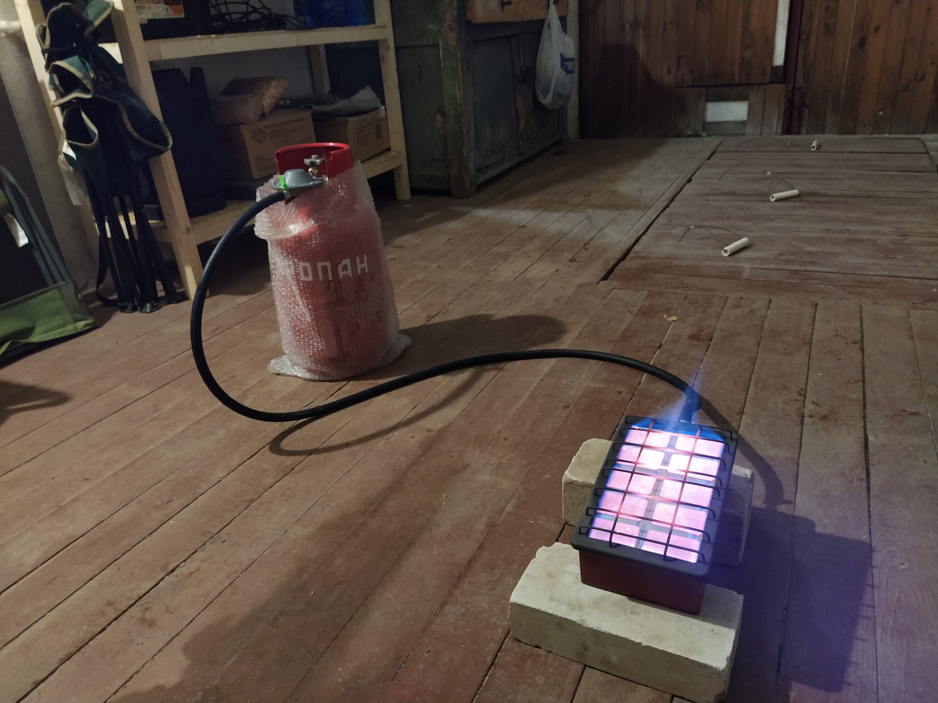 Подведу итог: при сравнении эл.тепловой пушки на 3кВт и этой газовой горелки, удивительно, но газовая в паре в каким-нибудь вентилятором в своей эффективности обогрева победила, именно при первоначальных около нулевых температурах. При первоначальных температурах выше +5 градусов конечно побеждает эл. тепловая пушка.