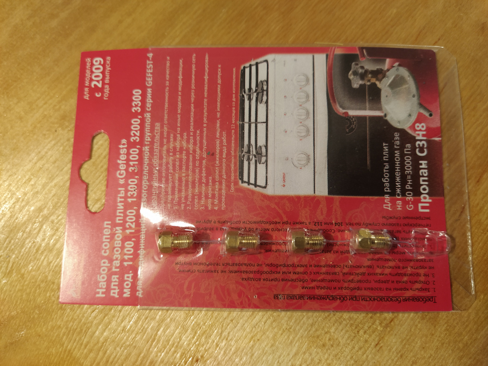 Дополняю. Съездил в магазин газового оборудования и взял набор форсунок (жиклёров) для газ.плиты Gefest за 125р. Советую! Там 5 форсунок, необходимый диаметр есть. Идеально подошла с диаметром 1.02 для духового шкафа.
