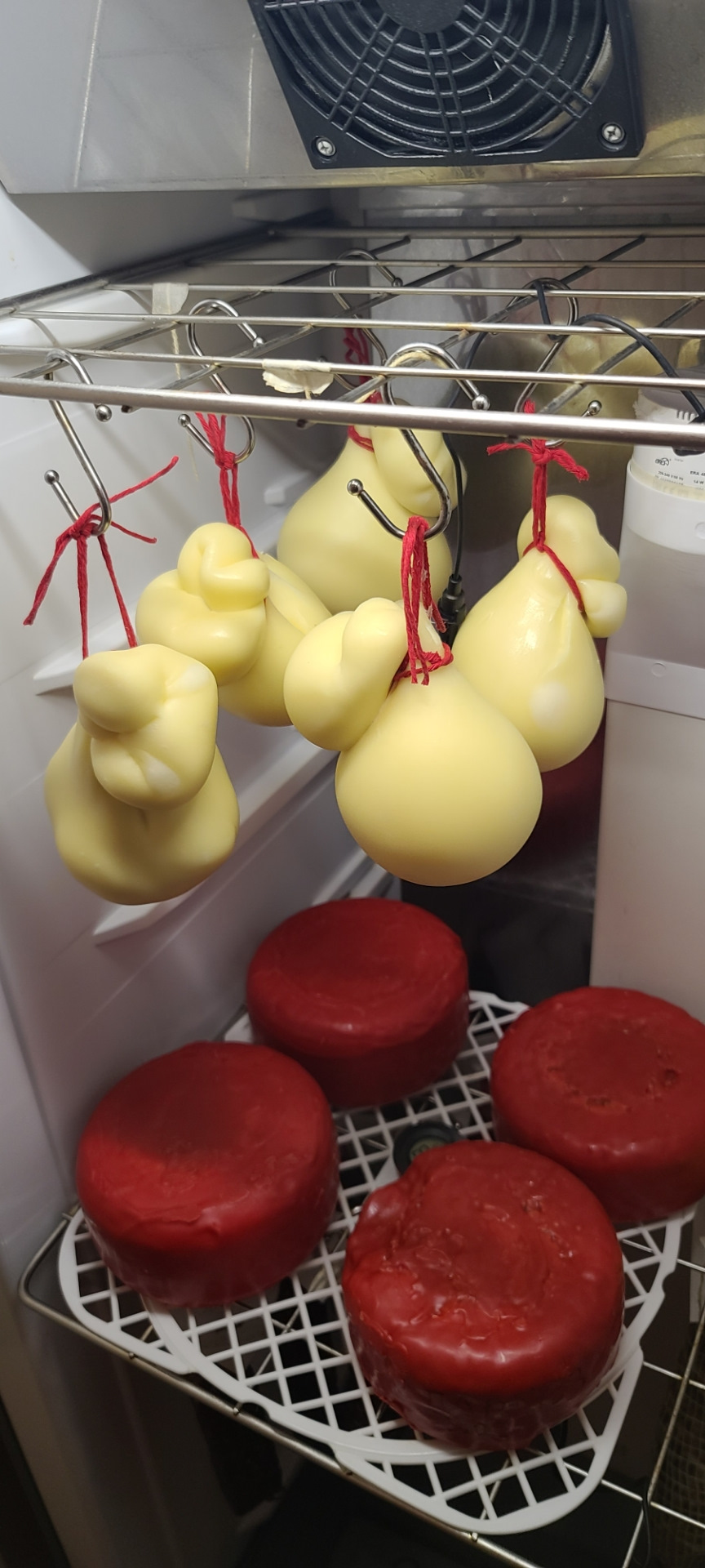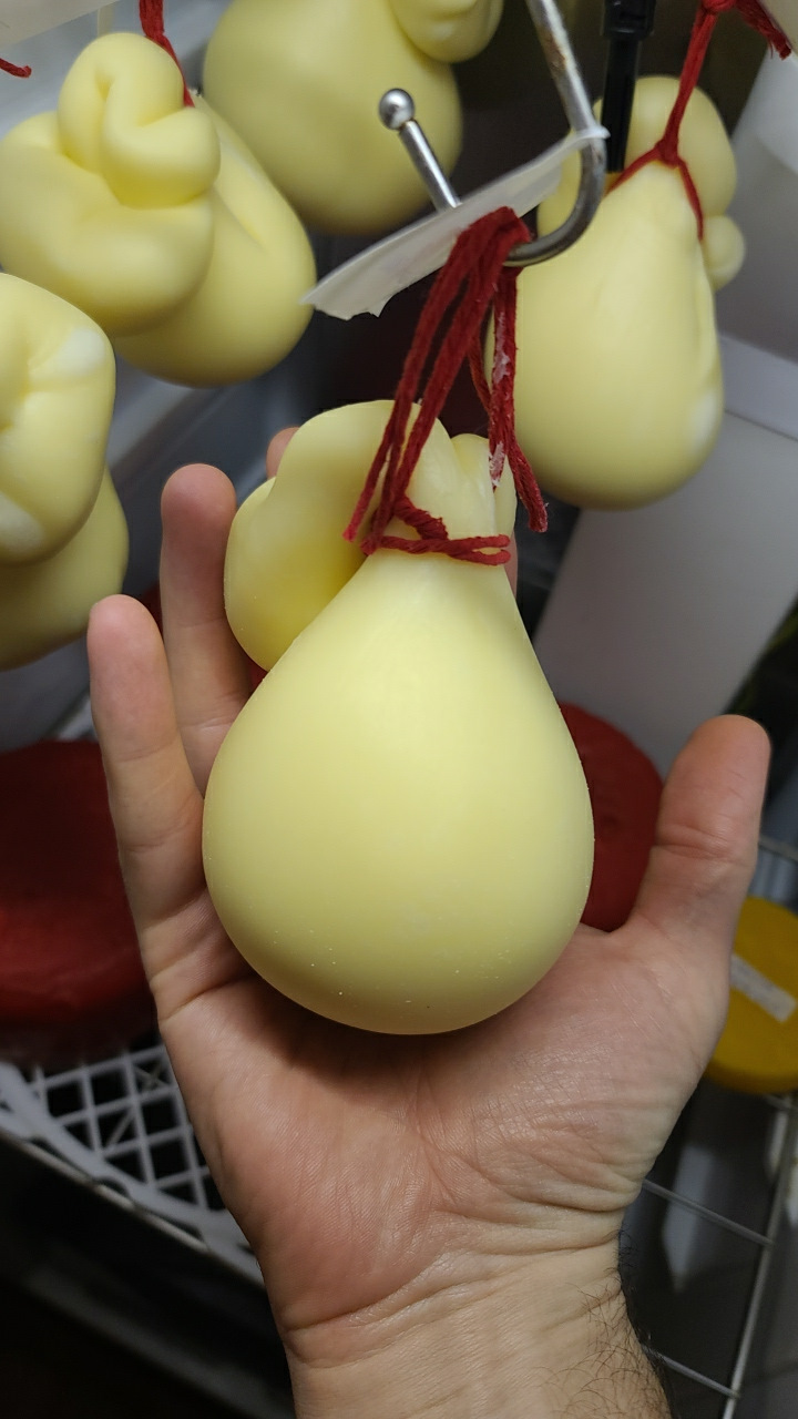 С самого начала сыроварения мне был интересен этот сыр название которому Качокавалло. В переводе — повешенный на лошади. Сицилийский вытяжной сыр, бывает как молодой 15 дней выдержки, полутвердый от 1.5 мес выдержки, так и "старый" до 2х лет выдержки.
