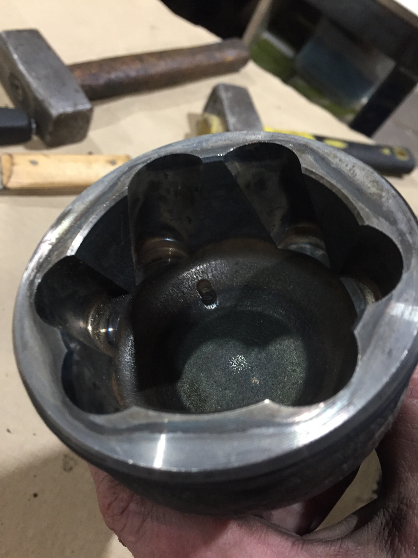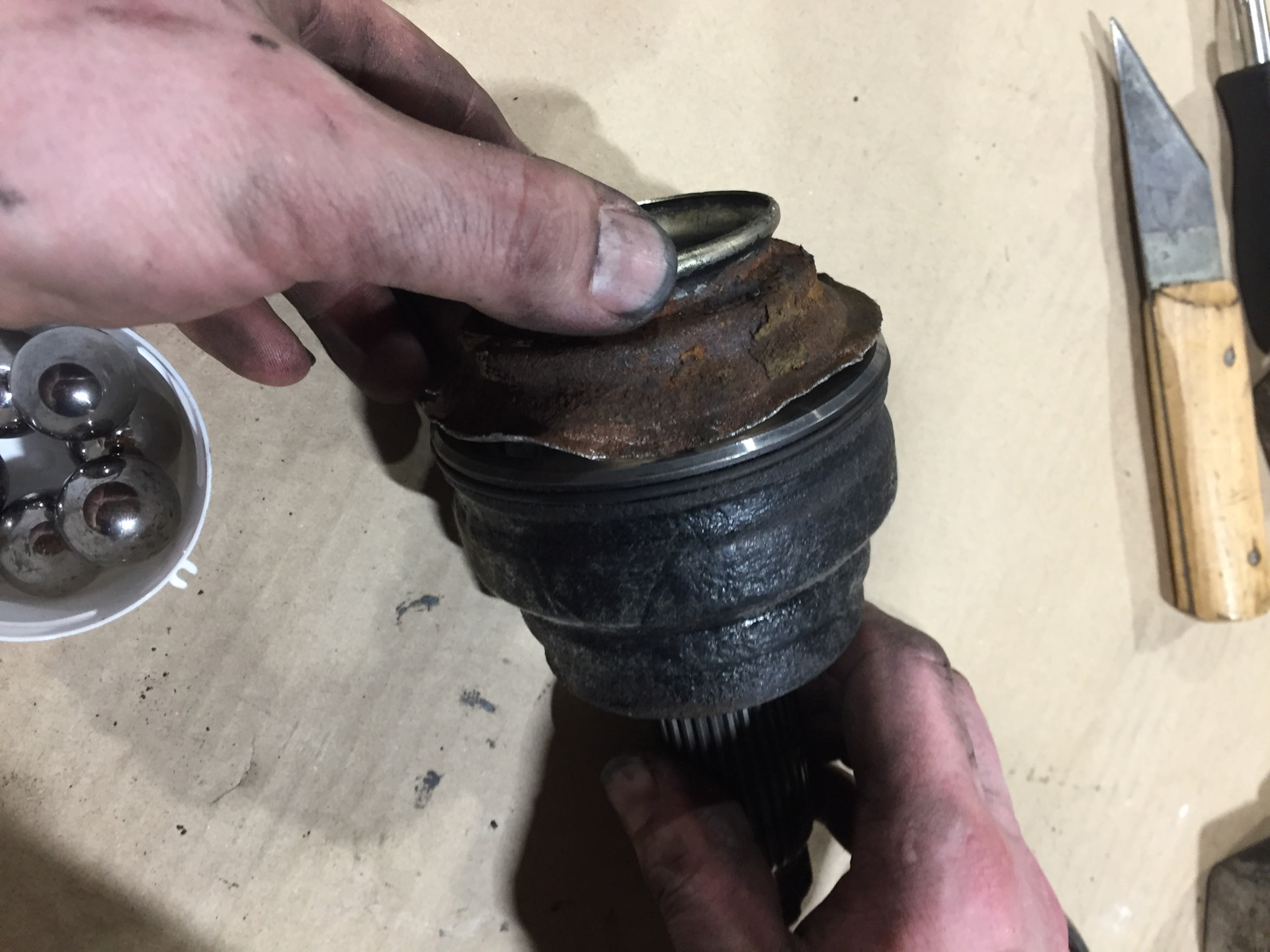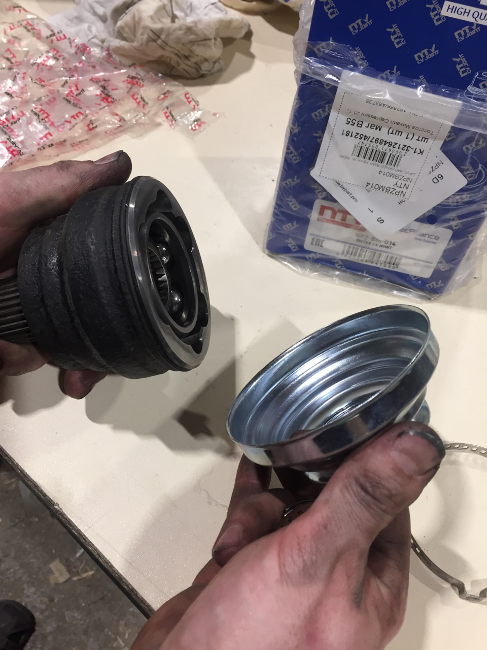 Делаем вывод, что это тоже полное говно, но нам же этот шрус не ставить на ось, нам нужна только металлическая чашка, так как гранату рекомендуется оставлять оригинальную, если конечно проблема была обнаружена на начальном этапе потери смазки сквозь дырки в чашке, а не когда шрус проехал на сухую тысячу км.