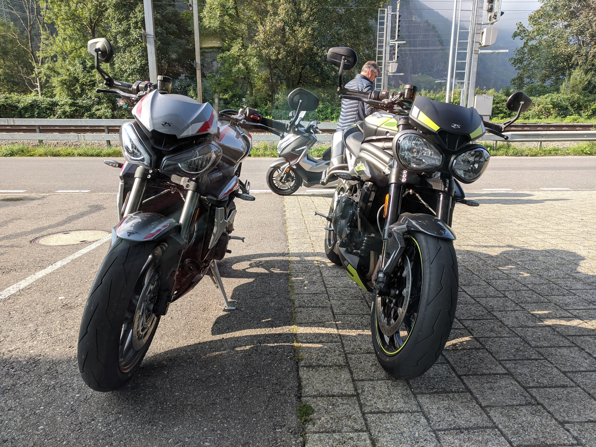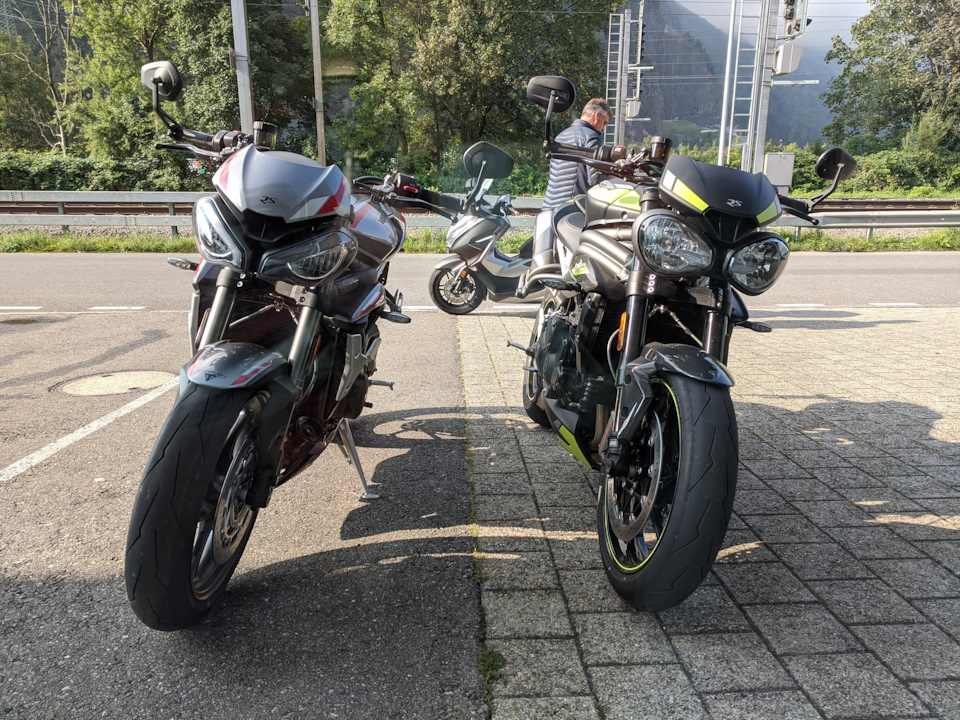Я вернулся полностью определившись, как и два года назад я предпочитаю Speed Triple 1050 RS. За него платишь больше, но он и дает больше, качество материалов, дорогие компоненты, электроника, инструменталка, звук, мотор, управление, он может все что может Стрит 765, но Стрит 765 не может все, что может Спид 1050. На Стрит я бы постоянно боялся за свои права, Спид у меня постоянно вызывает улыбку и радость в душе, не имеет значения еду я 50 или 100.