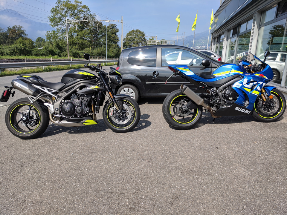 На тест я поехал на Джиксере, не на Дайтоне. К тому времени я еще не мог решить, продавать Дайтону или нет, и не хотел накатывать лишние километры, во-вторых я хотел сравнить литровый спорт с 765 и 1050 трешкой.