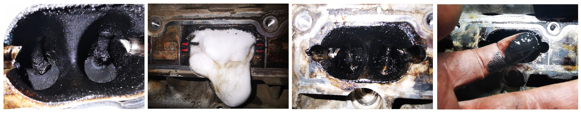 Не берутся в работу моторы после любого глобального вмешательства, даже если вам только перебирали головку блока, замена цепи не в счет. Также не принимаются в работу моторы на которых уже делалась не удачная раскоксовка. Картина последствий не умения работать химией может быть такой.