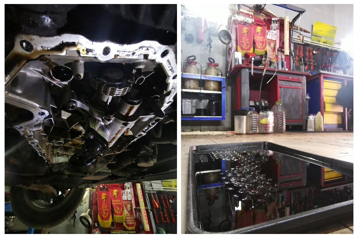 Весь процесс описывать не буду, кто был тот поймет))). После промыли двигатель и залили масло. У Александра было свое масло. После всей процедуры снова посмотрели внутрянку через камеру. Все чистенько, как новый. Попросил на доливку продать 1л. Масла, но Александр не продал…)))