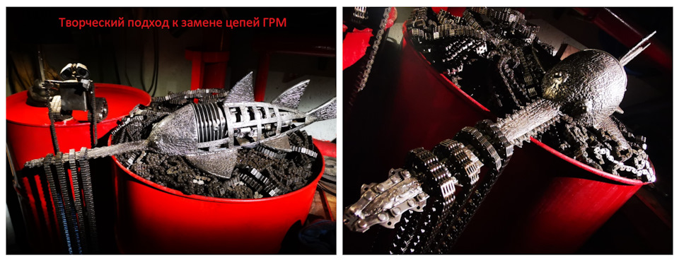 Мои друзья Валли с рыбой Пилой накопили солидный твоческий опыт по заменам цепей ГРМ и могут ответственно подтвердить! Многие меня спрашивают куда и для чего вы копите бочками замененые цепи ГРМ . Металлоломщики еще просят продать.