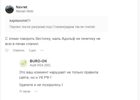 Это ваш коммент нарушает не только правила сайта, но и УК РФ !