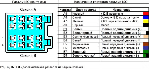 Обозначения, расшифровка контактов и проводов автомобильных магнитол.