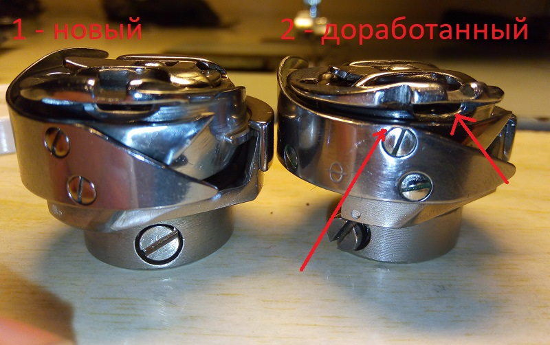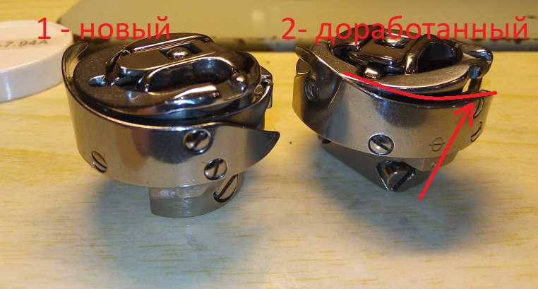 Плюнул и взял челнок из запасов (ну я же готовился, машины швейные на мателлоприёмках дербанил ;) ), так же обработал заусенцы, полирнул, выставил, проверяю = петляет, натягиваю верхнюю нитку, рвёт нитку на скоростях.