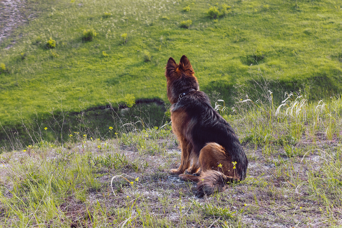 Замечательно пообщавшись, приготовив вместе вкуснейшее блюдо в казане на костре, погуляв и надышавшись свежим воздухом ближе к вечеру собираемся обратно в город. Джерри, почувствовав, что пора уезжать — перестала бегать, уселась на край обрыва и уставилась куда-то вдаль.