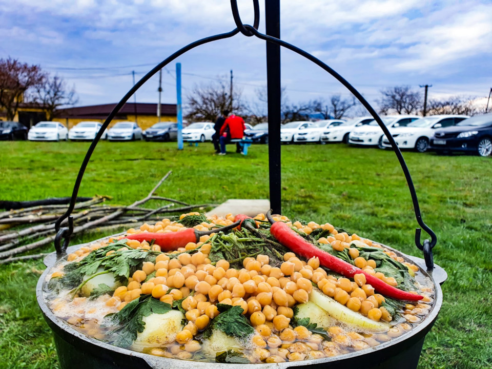 Вообще, блюдо очень нарядное, красочное — приготовление такого уже праздник, так что оно может смело конкурировать с так популярными у нас шашлыками на шампурах или решетке. В любом случае, для меня, все что приготовлено на костре и на природе — это уже заведомо очень вкусно и обладает неповторимым ароматом дымка. А тем временем, прошло около часа и мы приоткрыли крышку казана… Запах стоял обалденный, аж слюнки потекли.