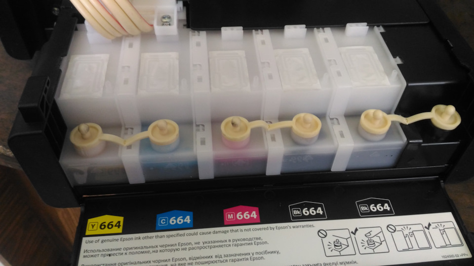 Посмотрел видео на примере эпсона 1800-го(будет в конце), ничего сложного там нет.Вытаскиваем бункер СНЧП, ставим его в горизонтальное положение, заправляем чернила и возвращаем обратно на место(он не прикручен, держится на зацепах):