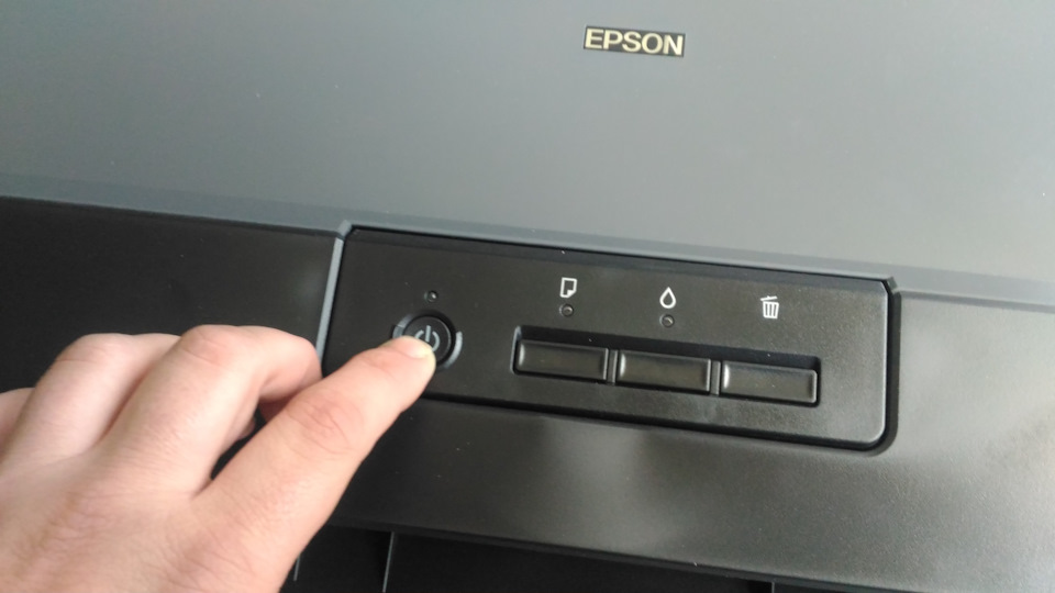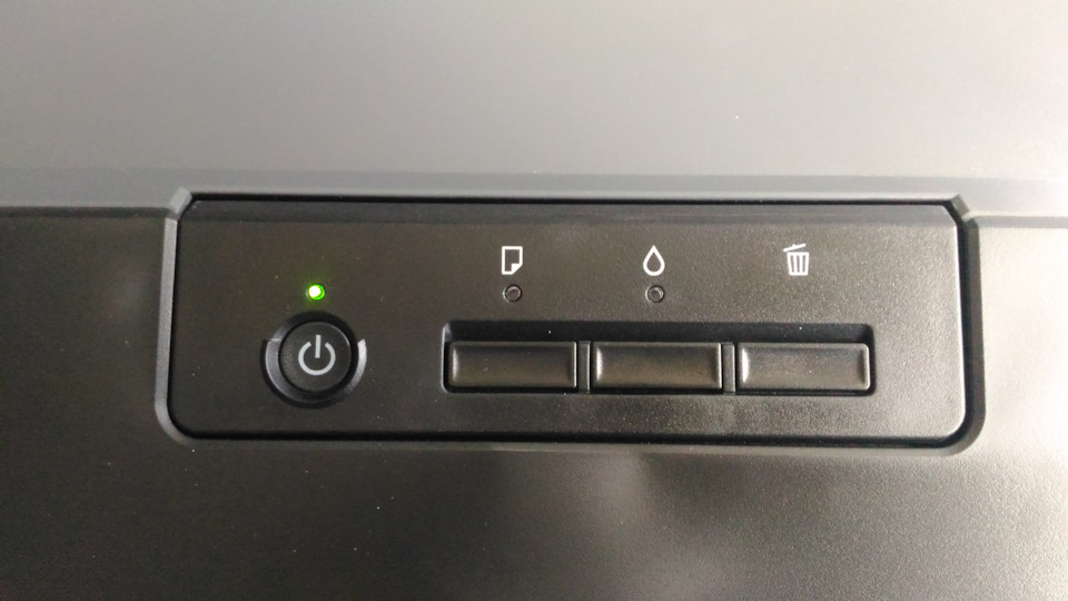 Как только "капля" загорелась нажимаем на клавишу под ней и держим 3-5 сек.Индикатор включения и капли начнут поочередно моргать, значит начался процесс прокачки чернил, можно к аппарату не подходить минут 20-25, он сам всё прокачает: