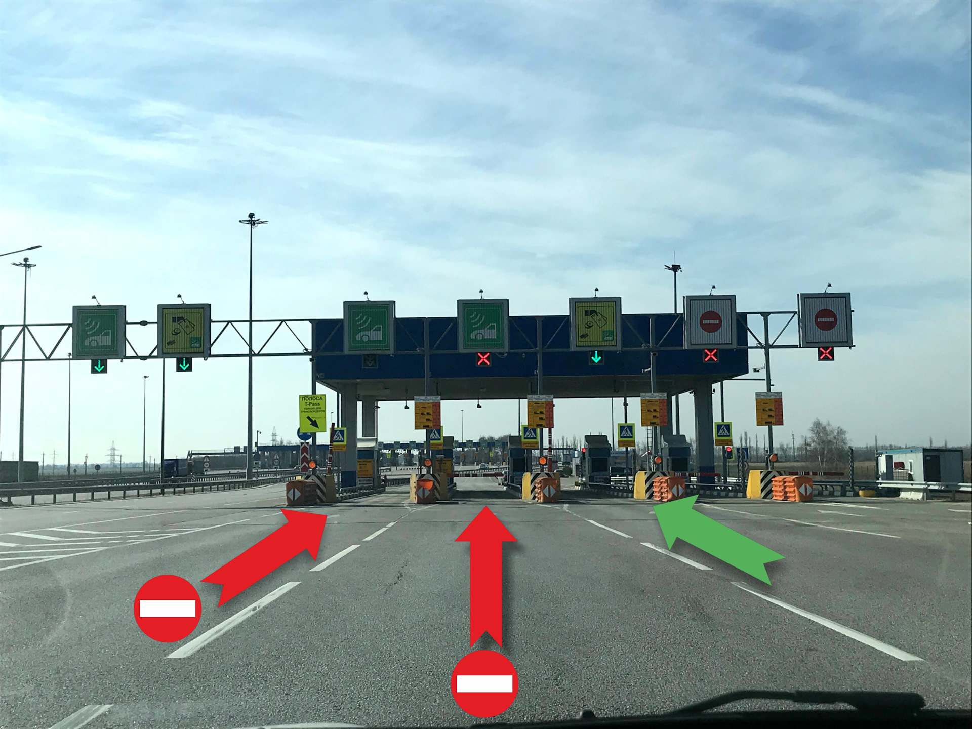 Подъезжая к воротам, в первую очередь следует обратить внимание на большие знаки НАД каждым из проездов! Не на пол, не в сторону, а именно НАД.