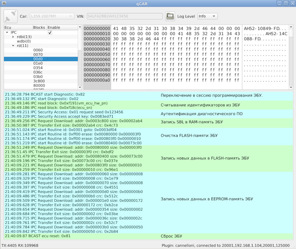 И уже на этом этапе, только эмулируя блоки, без которых SDD не хочет прошивать приборную панель, можно было перепрошить с помощью SDD приборную панель, что я в последствии проверил неоднократно. Но я решил не останавливаться на достигнутом и добавил в эмулятор возможность перепрошивки виртуальных блоков в эмуляторе. Для этого реализовал в эмуляторе следующие команды протокола UDS: Security Access(0x27), Routine Control(0x31), Request Download(0x34), Request Upload(0x35), Transfer Data(0x36), Transfer Exit(0x37).