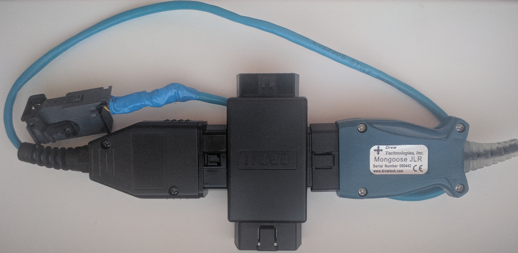 Все свои опыты с приборной панелью я производил в домашних условиях, приборная панель была подключена напрямую к адаптеру jlr mongoose с помощью OBD2-разветвителя заказанного на aliexpress. И как я теперь понимаю, что причиной всех проблем которые у меня возникли при перепрошивке приборной панели, было то что приборная панель не была подключена к автомобилю.