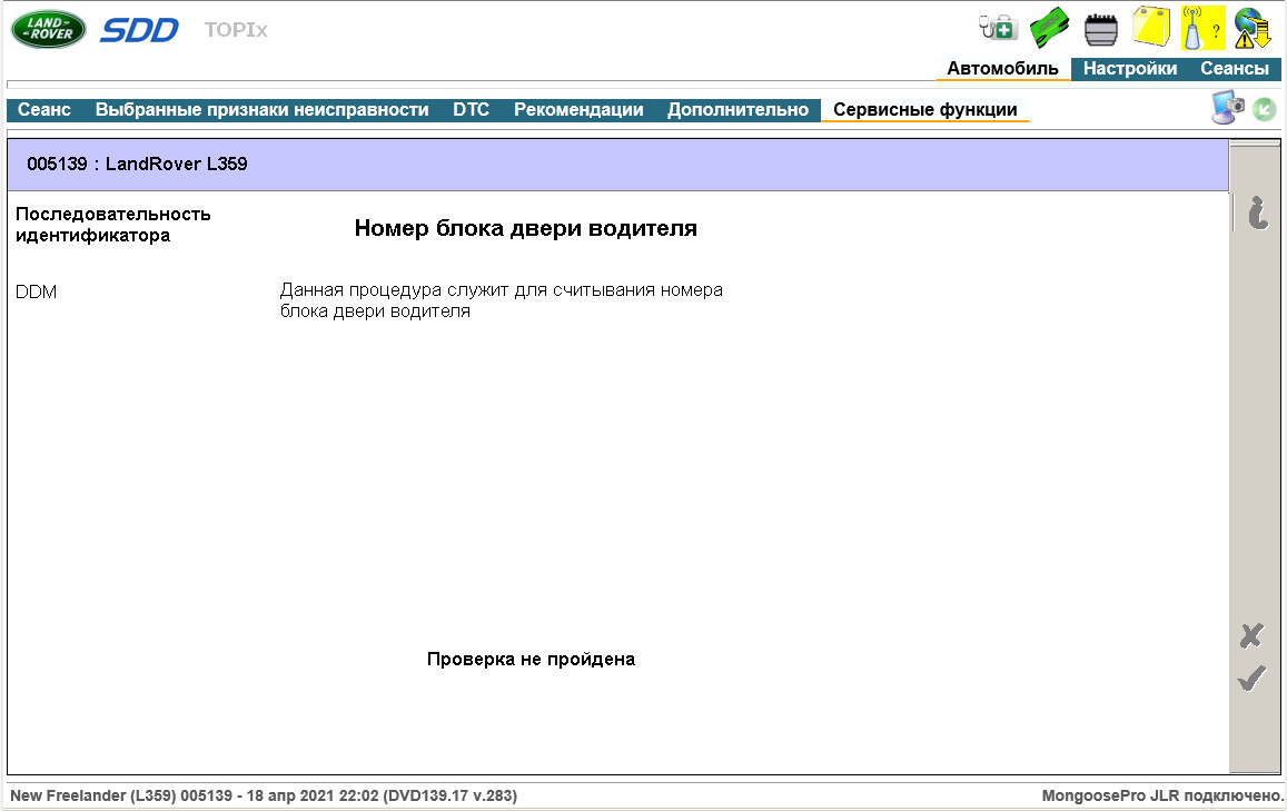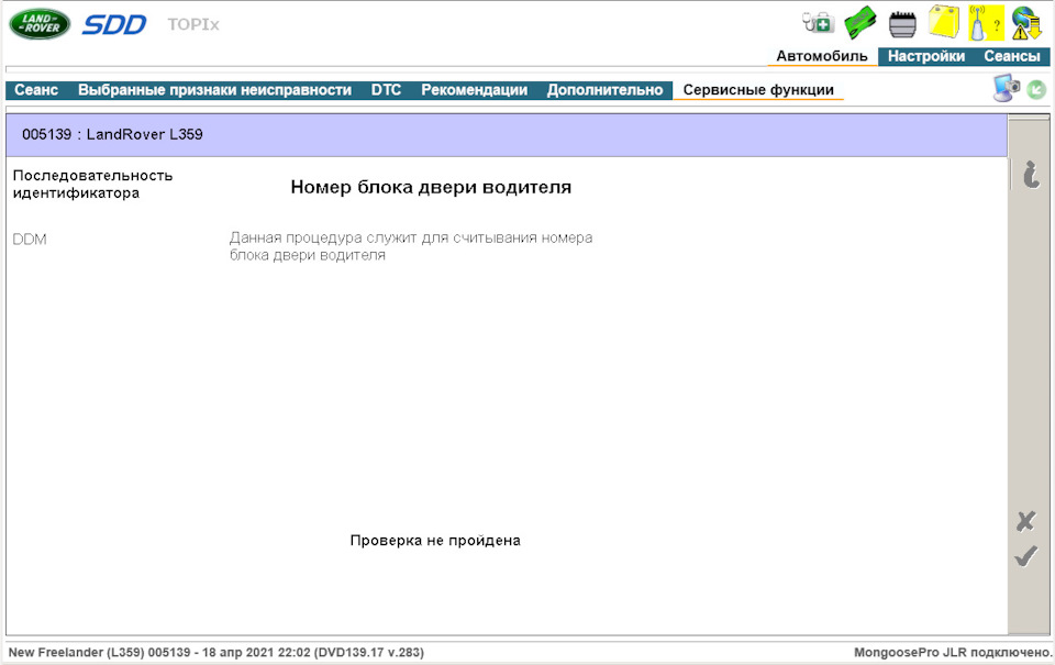 Второй вариант "Установка нового блока панель приборов" был доступен, но завершался после неудачного чтения данных с блока двери водителя(DDM) и блока двери пассажира(PDM). Так же, как я выяснил в последствии, при этом методе обновления прошивки в приборной панели дополнительно происходит перезапись данных CCF в самой приборке и в блоке кузова. Запись данных в другие блоки автомобиля не совсем явное поведение, поэтому считаю этот метод наиболее опасным для обновления прошивки в приборной панели.