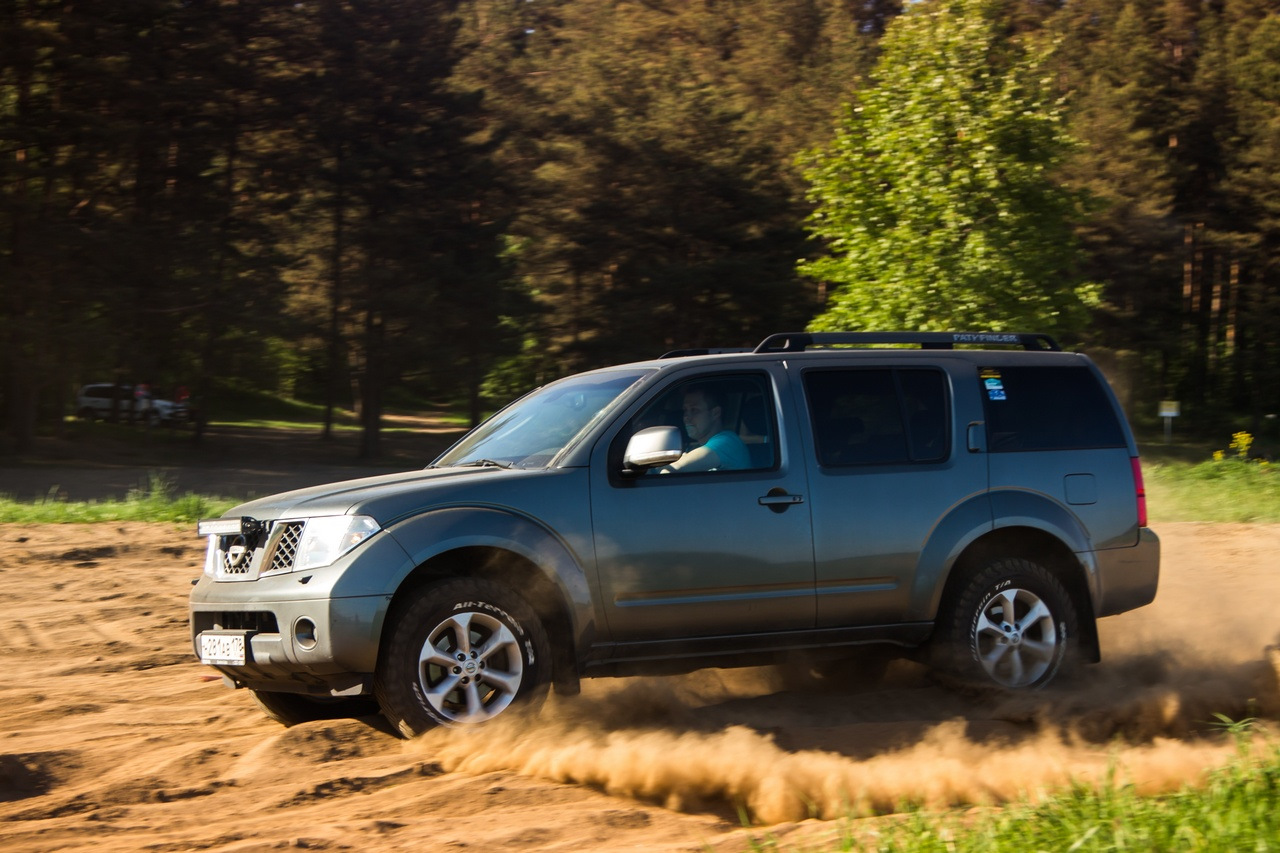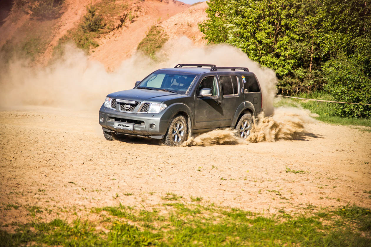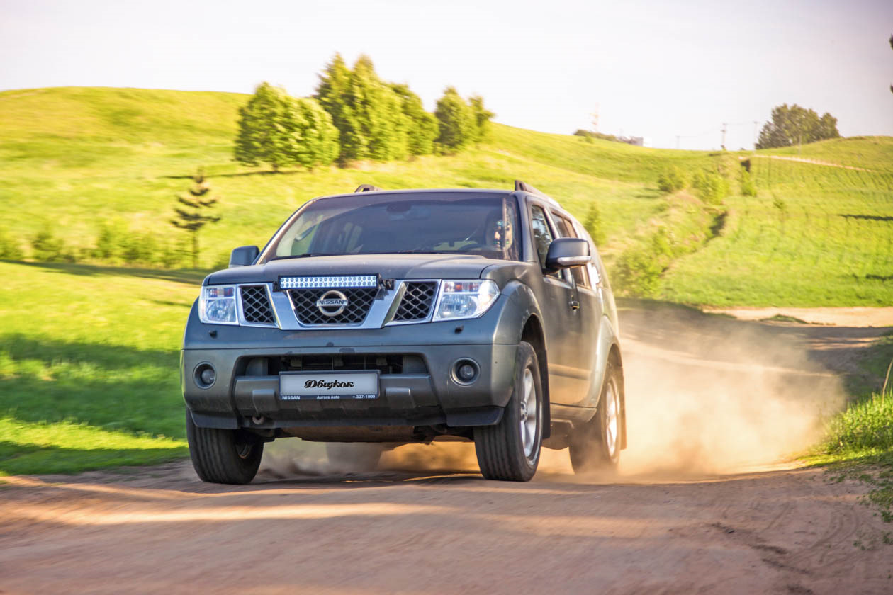 Подержанный рамный Nissan Pathfinder сам по себе не является «рулежным» автомобилем, реагируя на отклонения «баранки» с паузами и определенной «резиновостью» — большому внедорожнику это простительно. Более тяжелые и жесткие внедорожные шины в данном случае улучшают информативность управления. Колеса мало проминаются на изгибах рельефа и встречающихся препятствиях, тут же сообщая эту информацию через руль