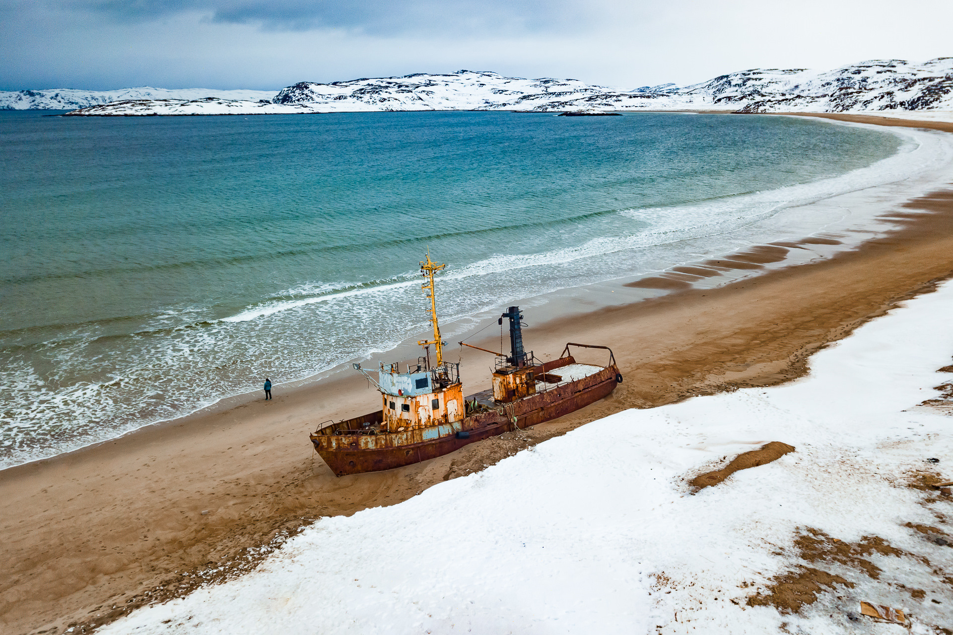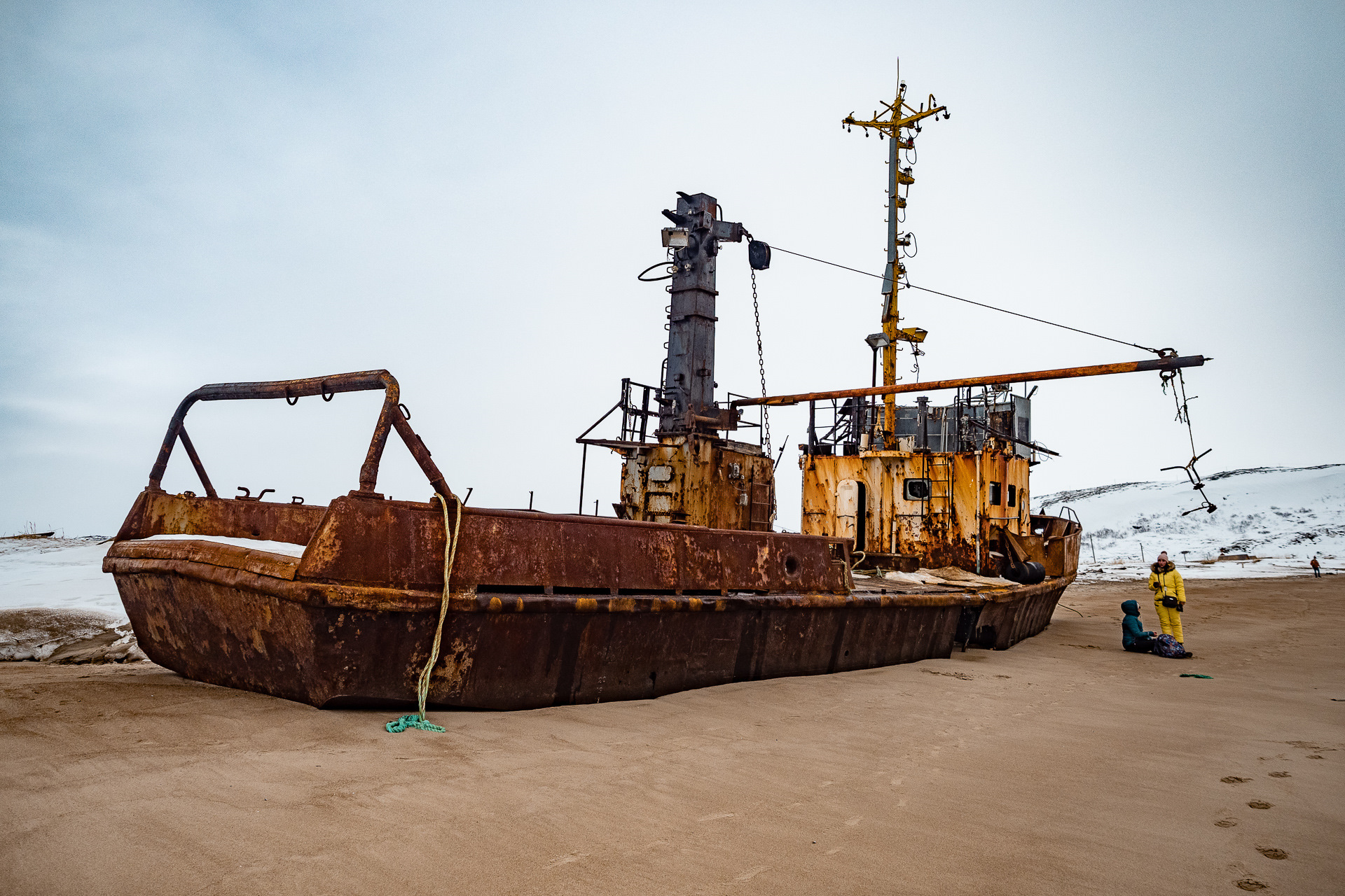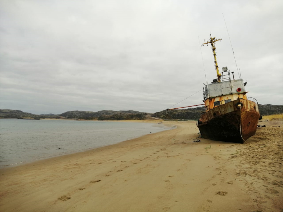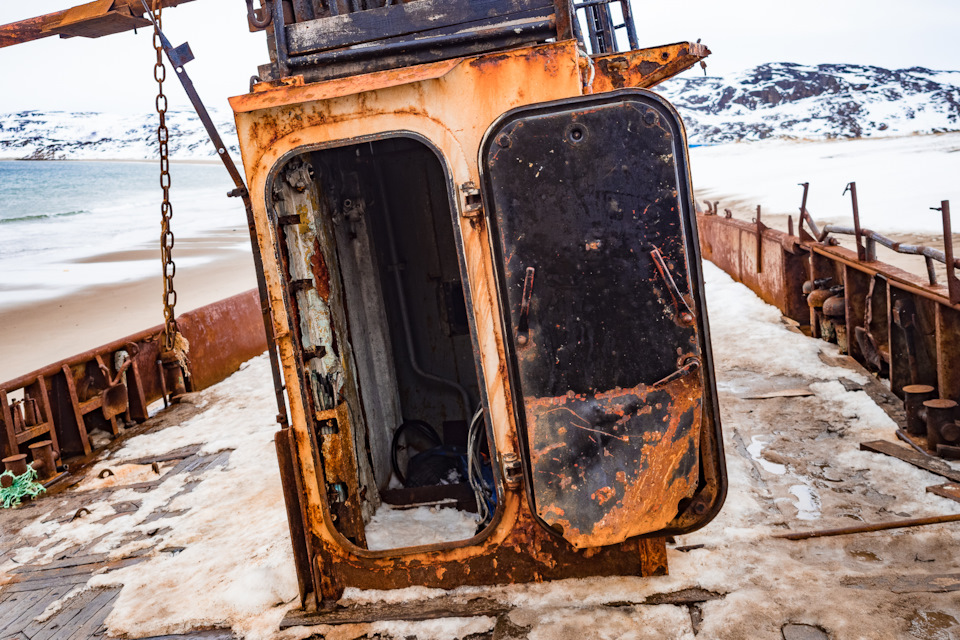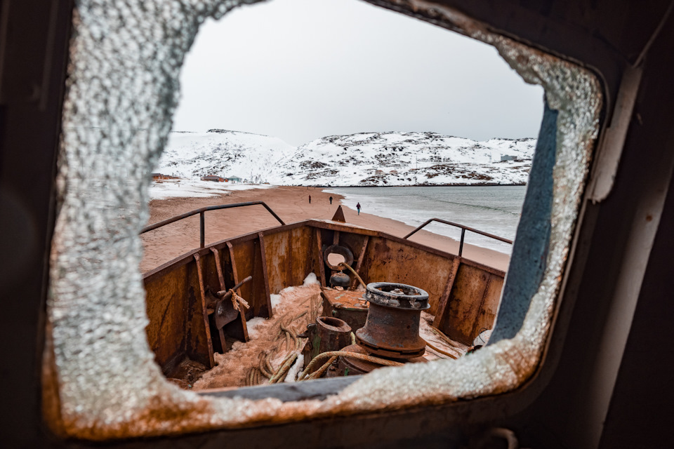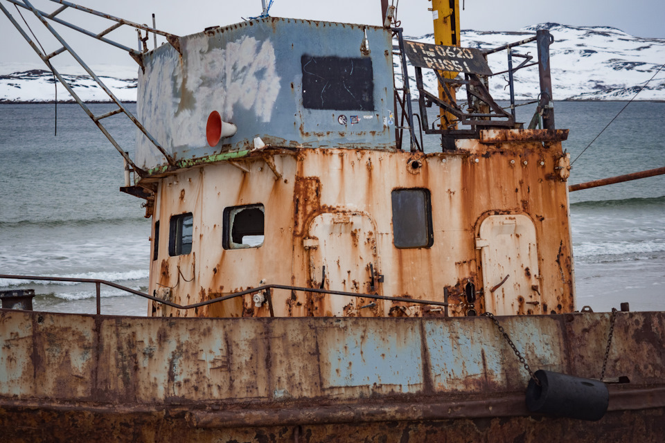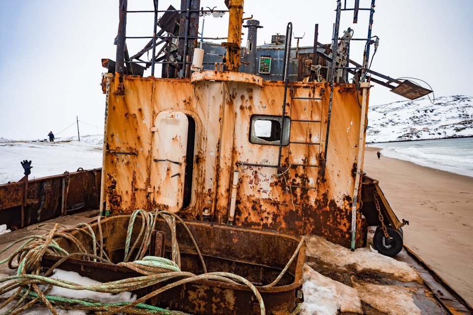 В итоге полуразобранный сейнер так и стоит, накренившись, на холодном морском берегу, насыщая пейзажи тем, за чем люди едут в Териберку — одновременно отрезвляющим и пьянящим дыханием севера, демонстрацией могущества природы и ничтожности человека.