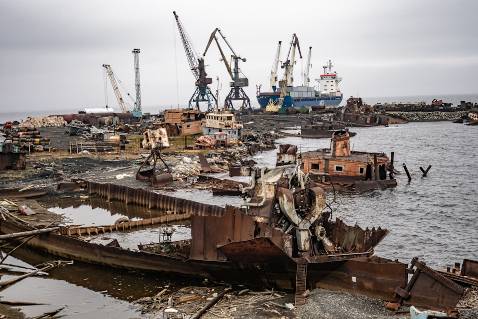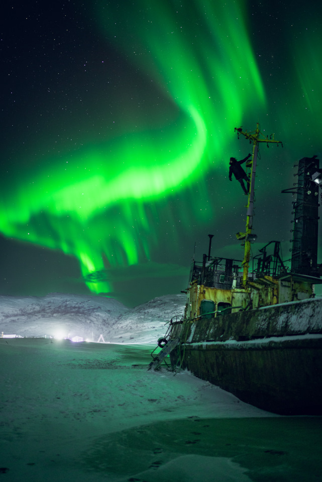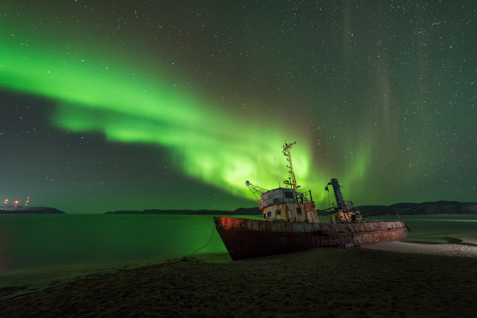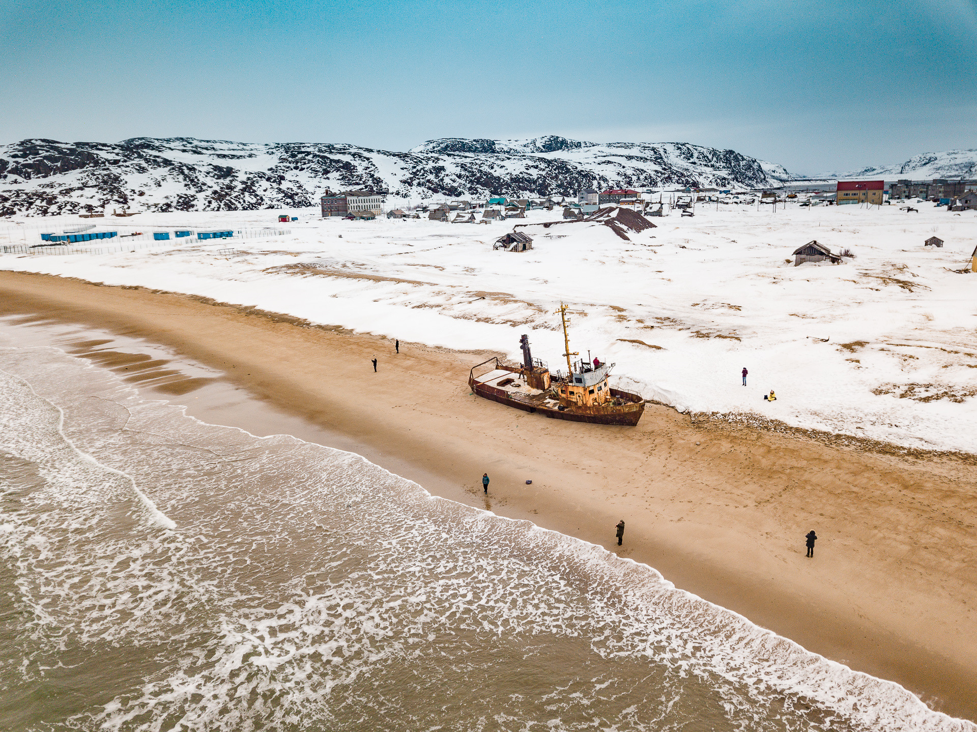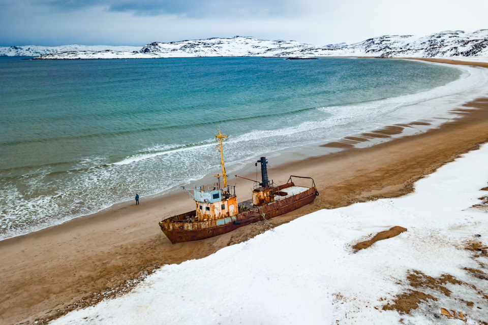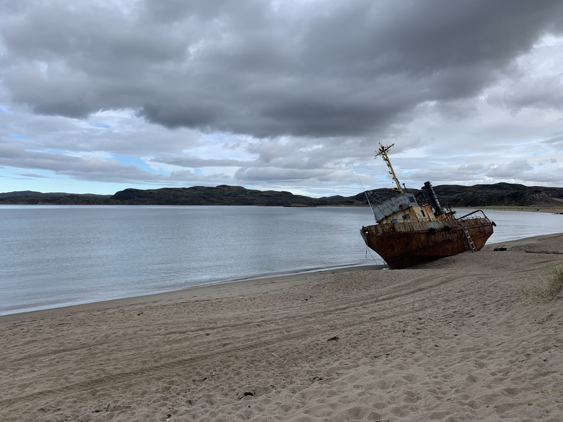 В итоге полуразобранный сейнер так и стоит, накренившись, на холодном морском берегу, насыщая пейзажи тем, за чем люди едут в Териберку — одновременно отрезвляющим и пьянящим дыханием севера, демонстрацией могущества природы и ничтожности человека.