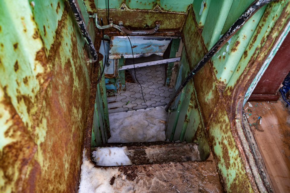Все ценное, что можно было скрутить, отломать, срезать — забрали сразу. Такие суда начали строить во второй половине семидесятых годов на Заводе им. Октябрьской Революции в Благовещенске, так что внутри все достаточно винтажно.