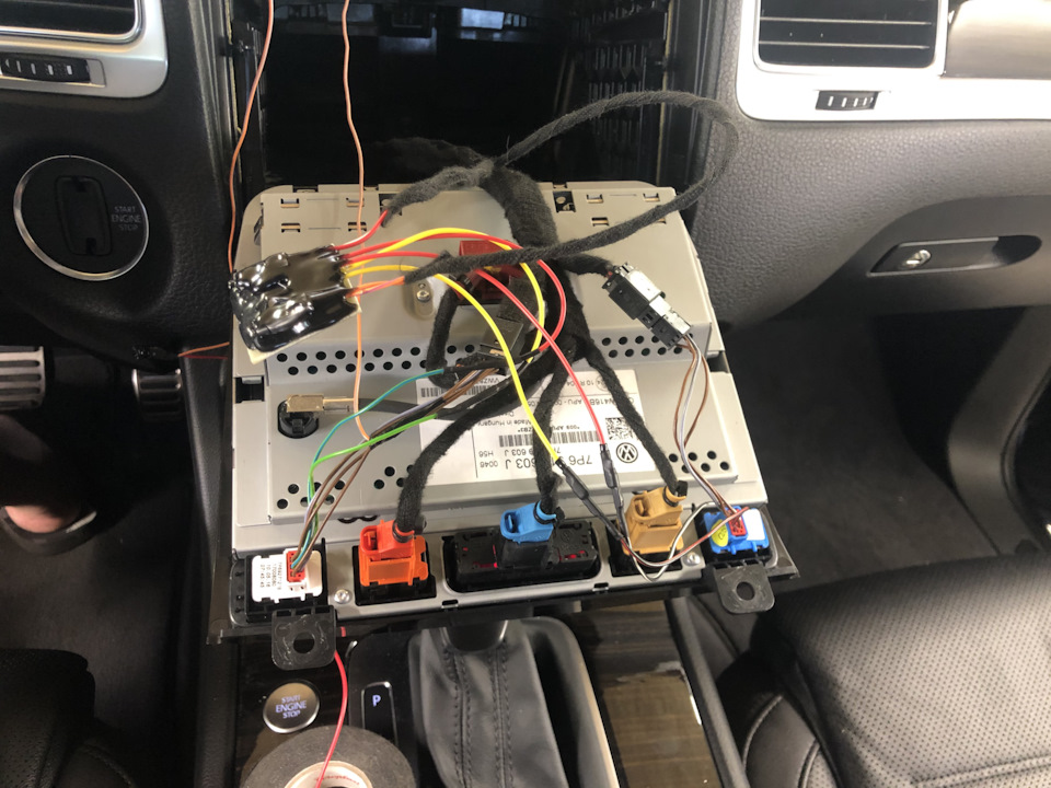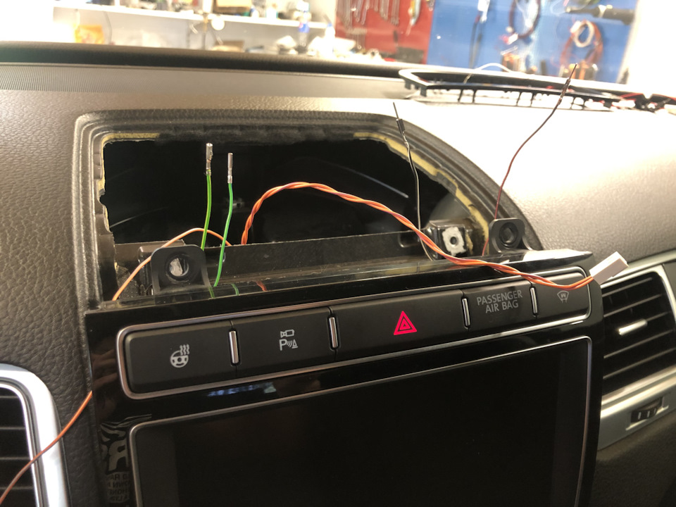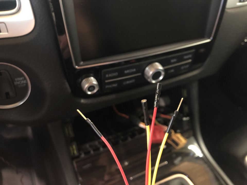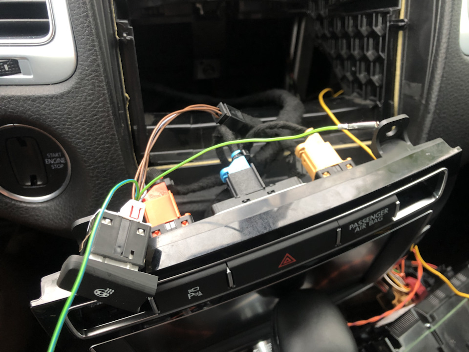 После отладки макета на столе, переместились в автомобиль. Сняли верхнюю консоль и экран, распиновали разъемы кнопок и достали нужные пины.