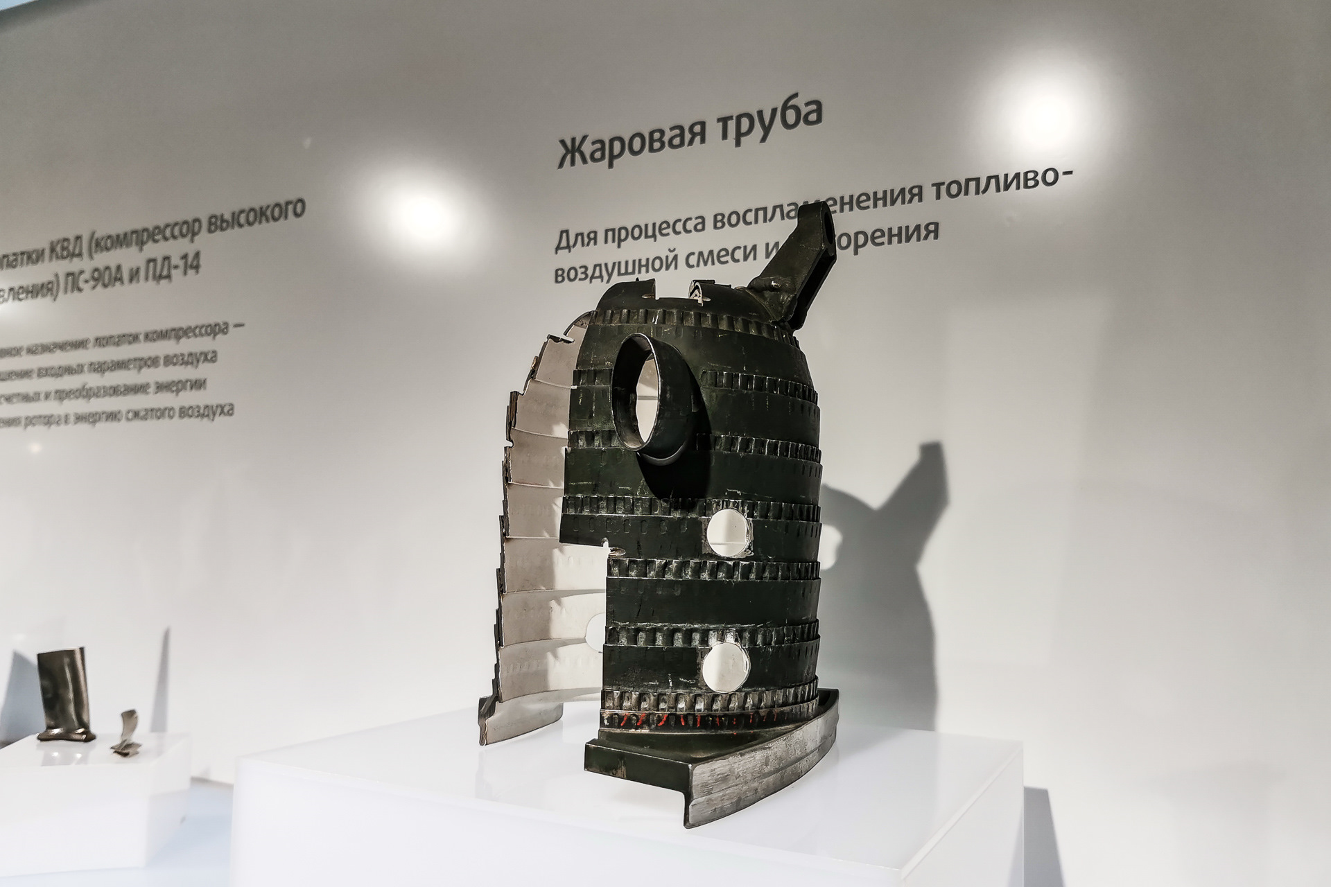 Следующим шагом стала разработка и серийный запуск принципиально нового авиационного двигателя ПД-14 для нового российского авиалайнера МС-21. Технологии нового двигателя представлены в музее в ограниченном, но значимом масштабе — разработанные отечественными специалистами лопатки служат гораздо дольше всех своих предшественников.