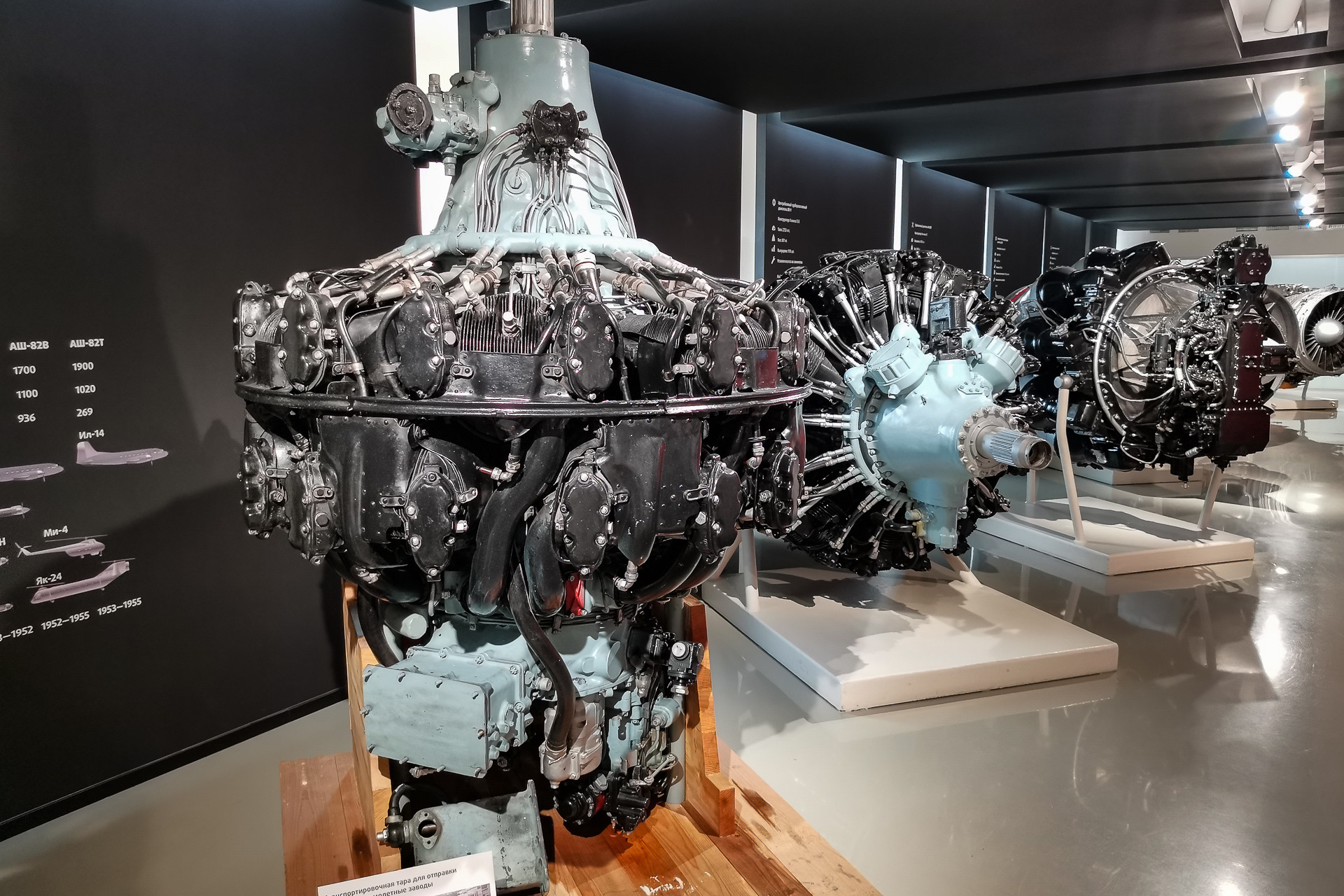 Двухрядный поршневой АШ-82 выпускался в модификациях от 1540 до 1900 лс, его ставили на самолеты Ла-5, Су-2, Ту-2, Ил-12, Ил-14, Ла-7, вертолеты Ми-4, ЯК-24.