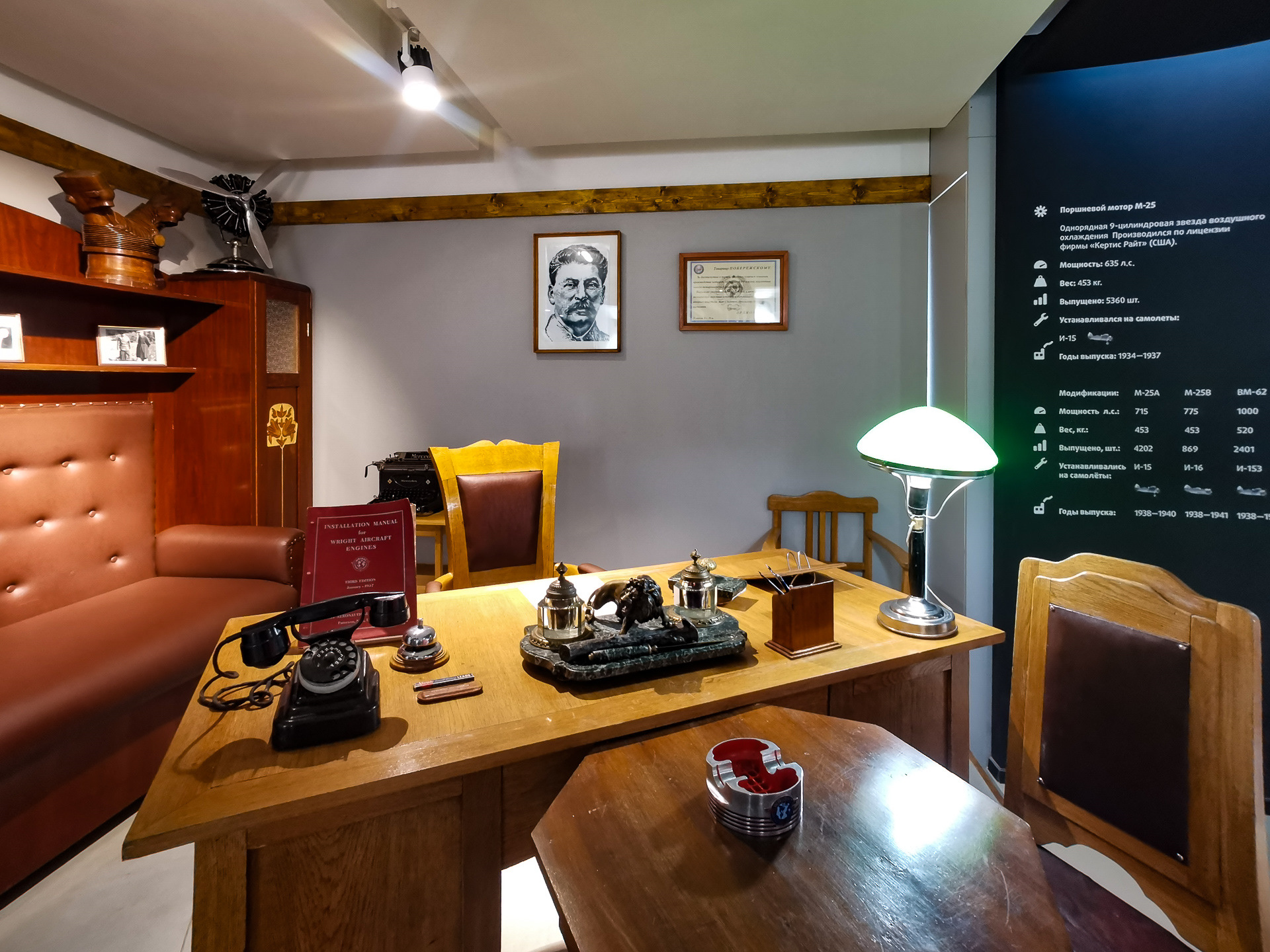 АО "ОДК-Пермские моторы", входящее в состав АО «Объединенная двигателестроительная корпорация», было основано на базе крупнейшего отечественного производителя авиационных двигателей, основанного в Перми в 1934 году как Моторостроительный завод №19 им. Сталина (позднее — им. Свердлова). Портрет Сталина висит на стене в одном из первых экспонатов — исторической реконструкции кабинета директора завода Иосифа Побережского.