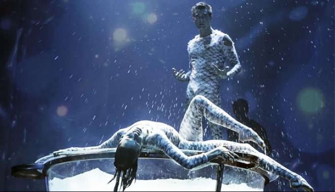 Зрители, побывавшие на спектакле, рассказывают, что постановка представляет собой поистине завораживающее зрелище. Артисты словно парят в толще воды. Специальная подсветка (спектакль проходит в темноте, обычно ночью — так удобнее для подводного освещения) создает невиданные эффекты. Вот появляется героиня, танцует перед зеркалом, красит губы. Герой сидит на стуле, словно действие происходит в обычном помещении. Проплывают через всю сцену и исчезают страшные чёрные тени, взлетают кверху красиво освещённые пузырьки…
