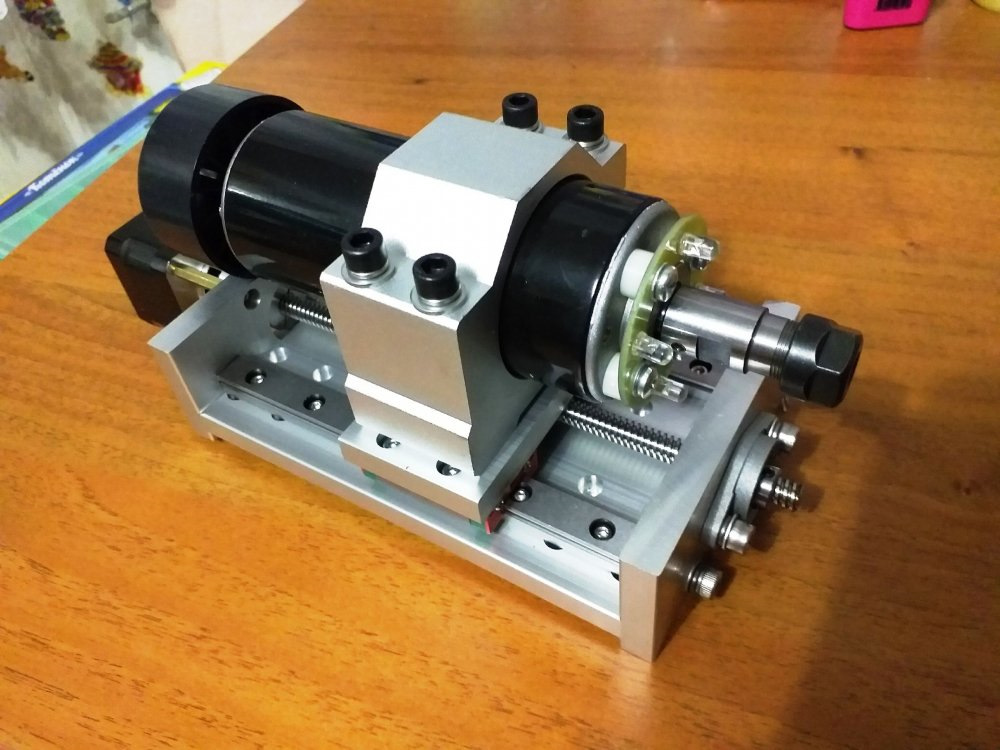 И еще один момент, который меня немного напрягал, это длина шпинделя. Как самого в сборе, так и нижней части, в которой крепятся цанги, так и двигателя.