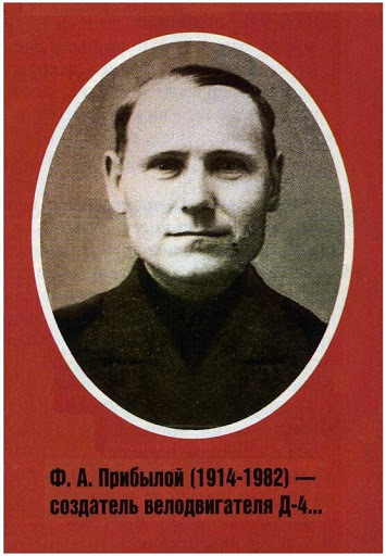Во-первых, портрет Филиппа Александровича Прибылого с подписью «создатель велодвигателя Д-4» был в музее ленинградского завода «Красный Октябрь». А кого-попало там бы не разместили.