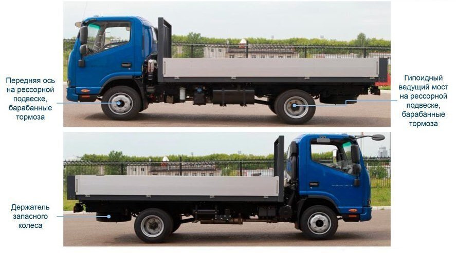 «Девятку» оснастят 3,8-литровым турбодизелем Cummins ISF мощностью 152 или 166 л.с. В первом варианте грузоподъемность составляет 5,6 тонны, во втором — 5,9. Мотор сочетается с шестиступенчатой механической коробкой передач марок JAC или FastGear.