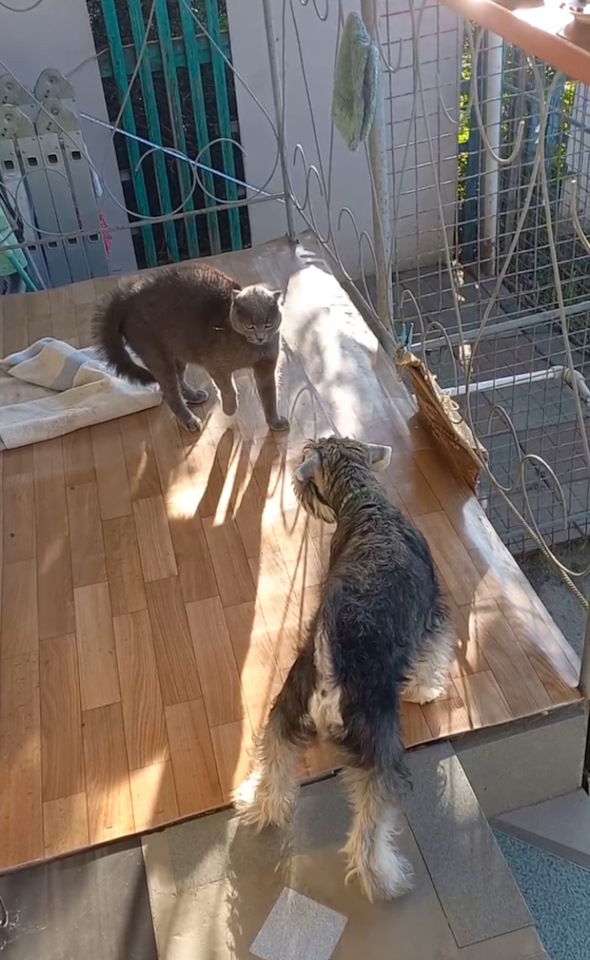 Наш тоже обожает кошек)) есть магазин рядом, где 3-4 постоянно сидят, так он постоянно хочет пройти именно там, если идем в другую сторону — встает и упирается четырьмя лапами- ему надо навестить кошек 😁
