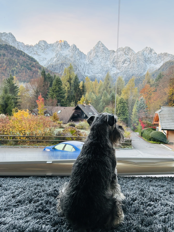 В общем, собака не дает скучать-слишком умная и хитрая порода, всегда и во всем ищет выгоду себе и наблюдает, когда хозяин даст слабину. Недавно были в Словении, нравятся ему горы)))
