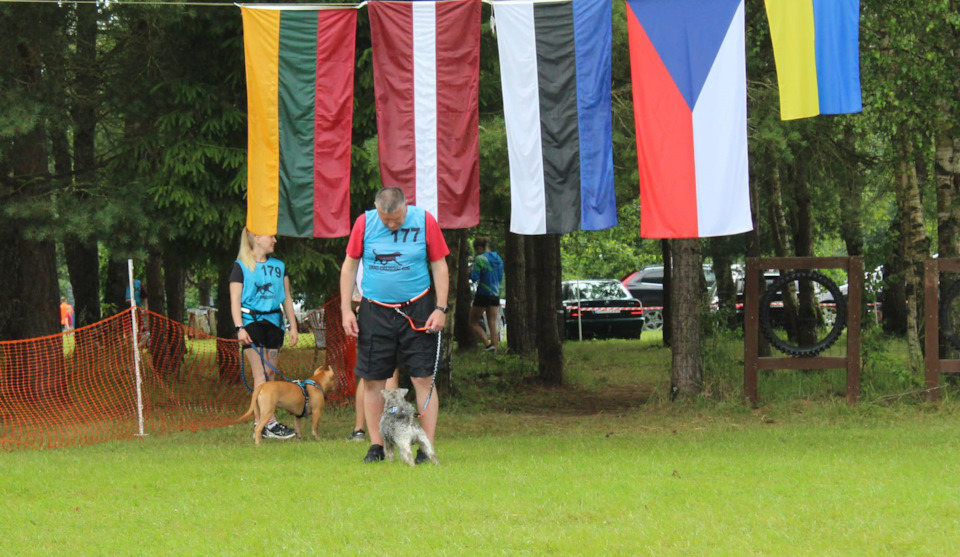 Кстати, тут мы с Барой готовимся, к старту, но если обратить внимание, на флаги . То я поясню, что второй год подряд, на кани-биатлон, приезжает семья, с детьми и двумя собаками и супер активно, участвует в забегах и пешем преодалении трассы, в том числе и с детьми, что допускается, в сопровождении взрослого, детям старше 8-ми лет…