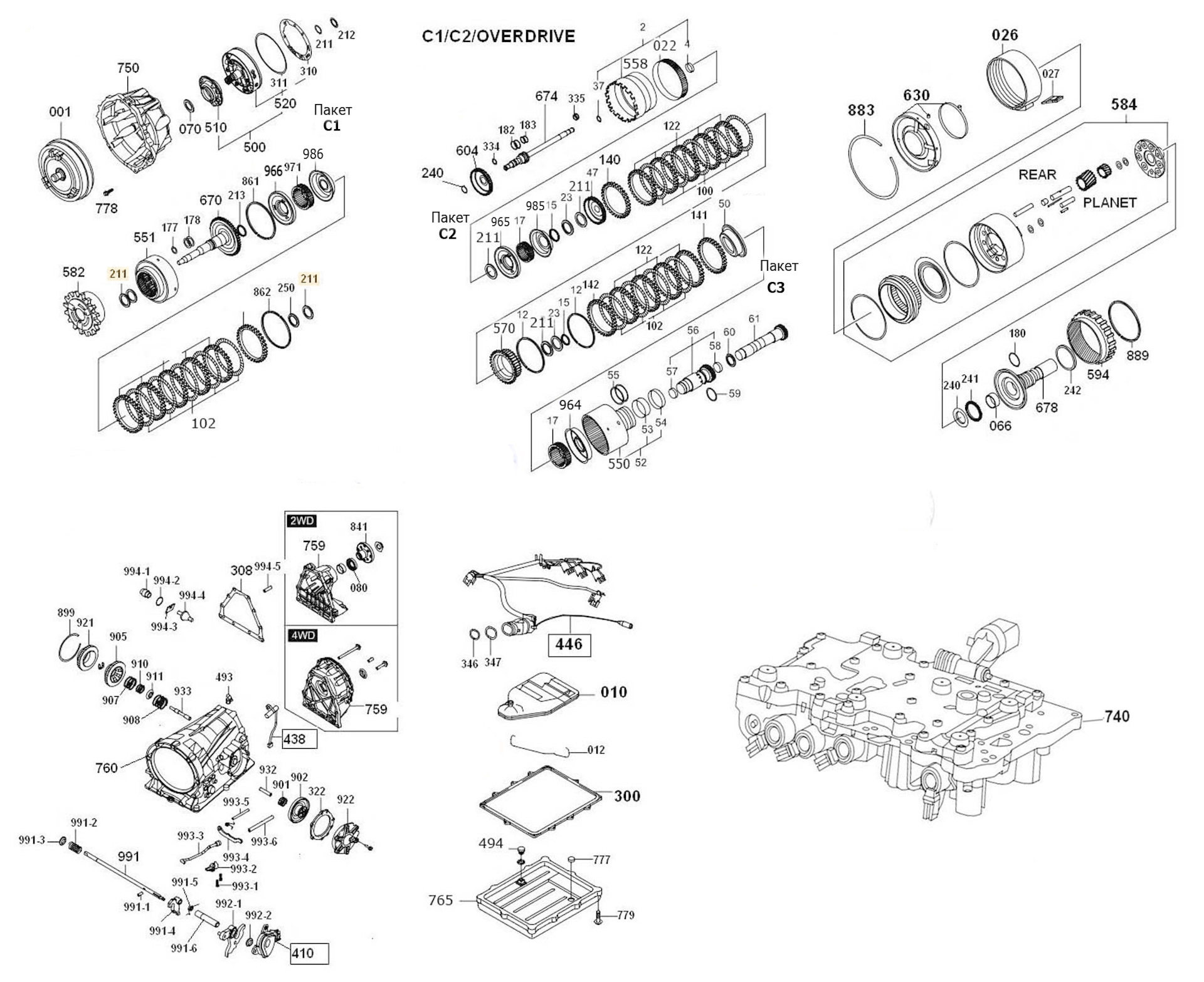 4. Разновидностей внутренносте этих коробок великое множество. Есть отличия в высоте барабанов фрикционных пакетов, разные гидроблоки, разные планетарные механизмы, разные блоки насосов. Т.е. под одним именем M74 внутри может скрываться десяток разновидностей. Целиком коробку можно заменить, но вытащить детали из одной и поставить в другую вряд ли получится.