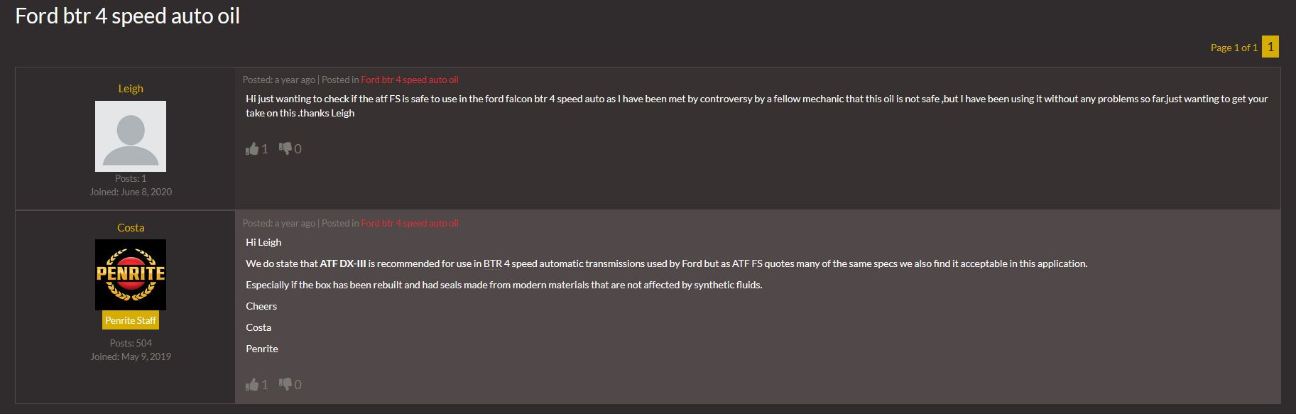 Лет пять назад я мониторил интернет на тему того, какое масло применяют австралийцы. Они отдавали предпочтение маслу фирмы Penriteoil. Например ATF MHP (Semi Syn.) или Penrite ATFDX3004 Mineral Automatic Transmission Fluid