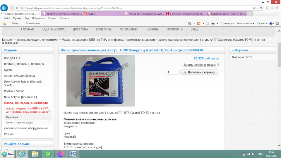 Льют и его. Но это дексрон 3, синтетика, а она АКПП MBTR74LE противопоказана. Да и цена 1700 р за литр дороговата. Дексрон 2 по цене 800 р наше все☝️