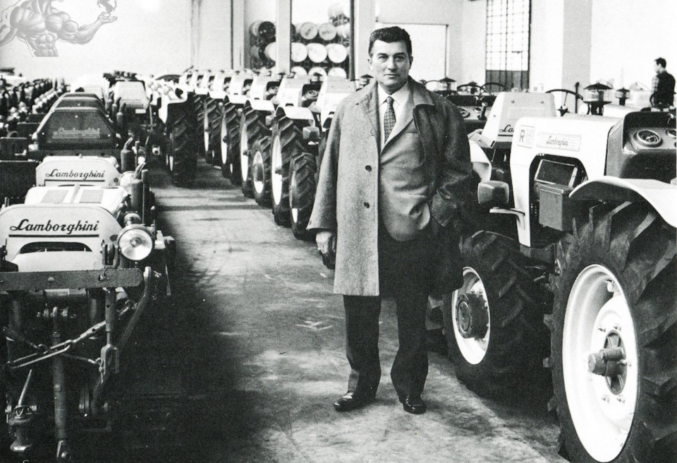 Ферруччо Ламборгини родился 28 апреля 1916 года в местечке Ренацио ди Чента. Всепоглощающая любовь к технике привела молодого итальянца в инженерную школу в Болонье. Закончив школу, Ферруччо работал механиком в армии, он прошел всю Вторую Мировую войну. В военные годы вся промышленность работала исключительно для целей армии. Все это и породило огромный дефицит сельскохозяйственной техники. В то же время, после 1945 года осталось немало военной техники, никому не нужной в мирное время в таких количествах. И предприимчивый итальянец начинает переделывать боевые машины в комбайны, сеялки и прочий инструмент. К концу сороковых годов ему удалось наладить выпуск тракторов собственной конструкции. В 60-е, Ферруччо уже был состоятельным человеком и владел несколькими компаниями.