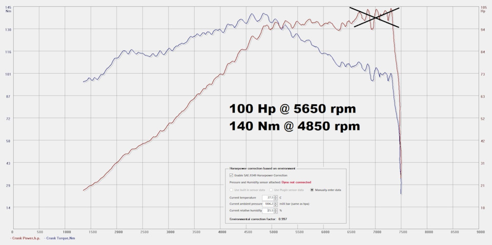 Итак что мы получили на стенде, это приведенная к стандарту SAE J1349, мощность со всеми поправочными коэф.
