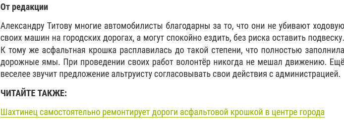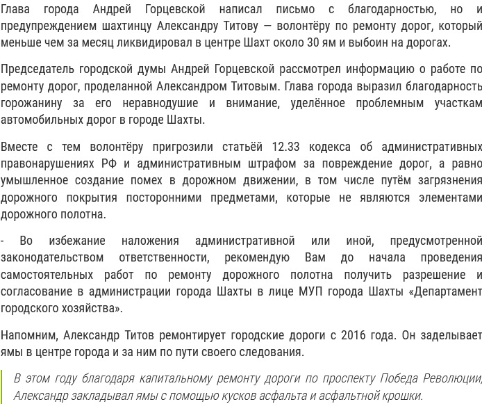 У нас на Кавказе во всю орут о развитии туризма и запрещают строить места для размещения гостей и отели… Так что этому замечательному человеку чтобы увеличить привлекательность города, тоже не согласуют ремонт дороги