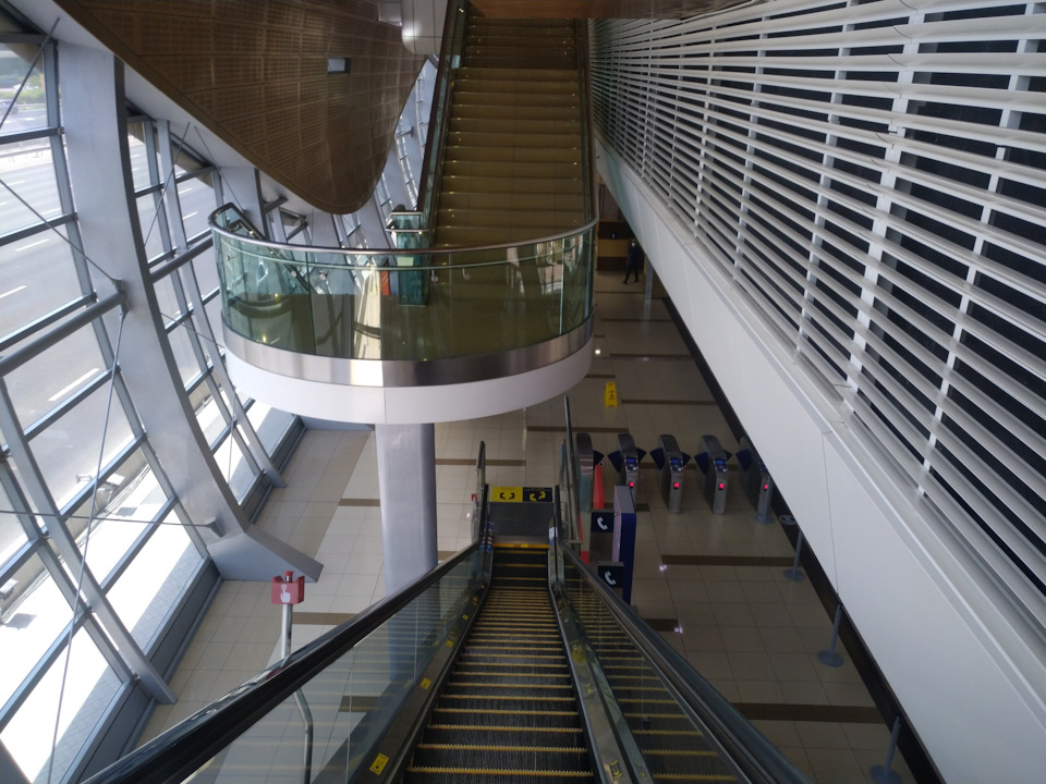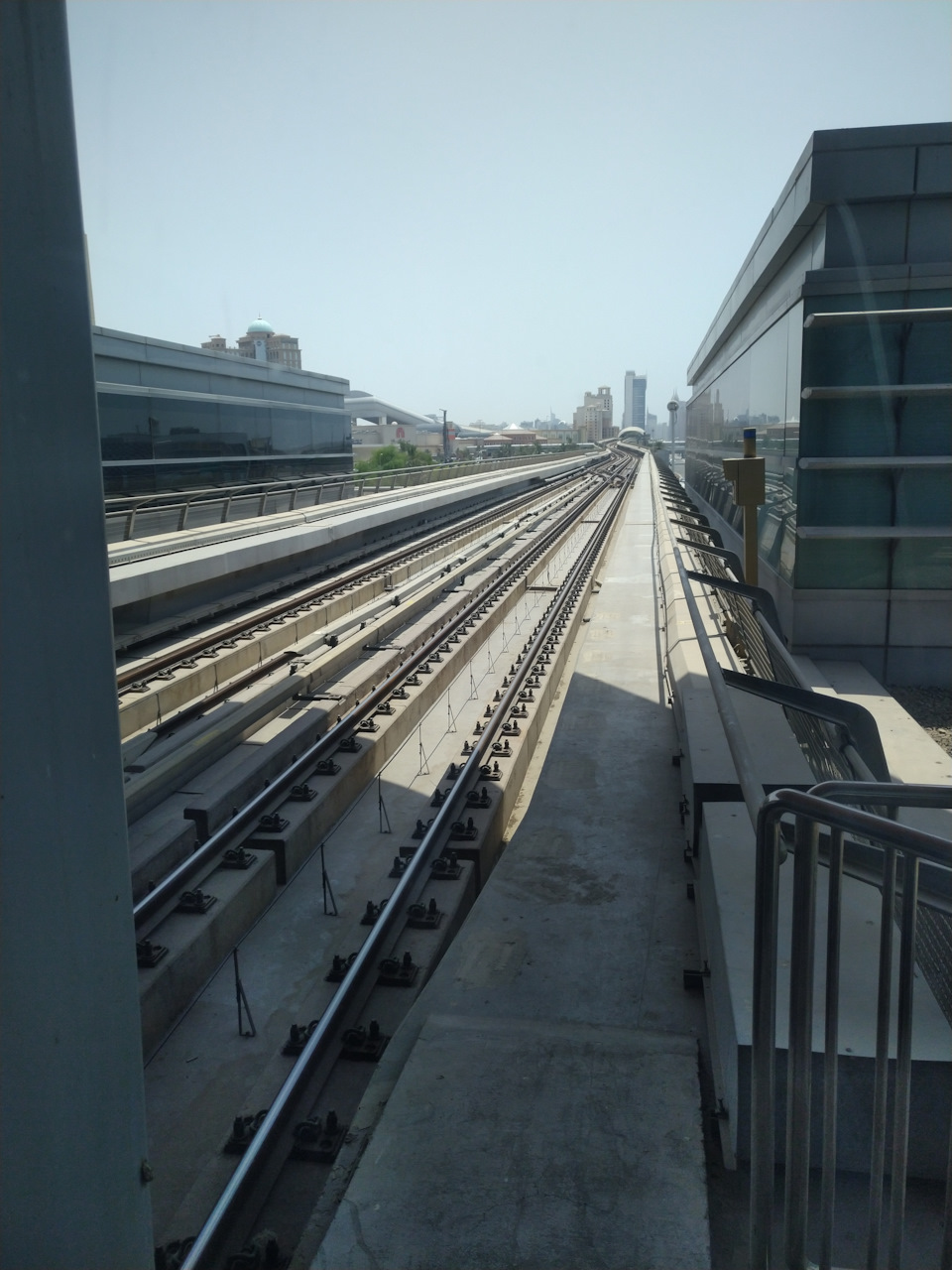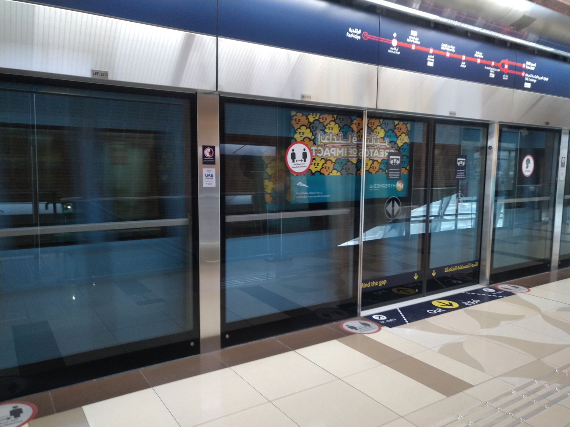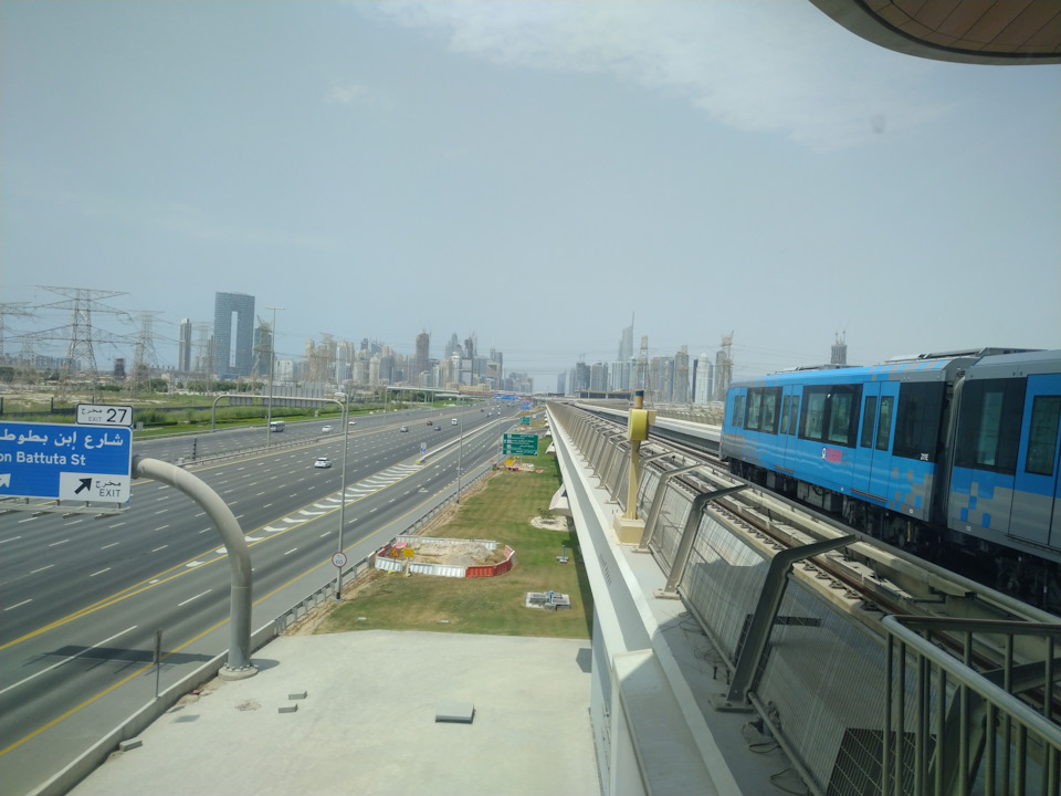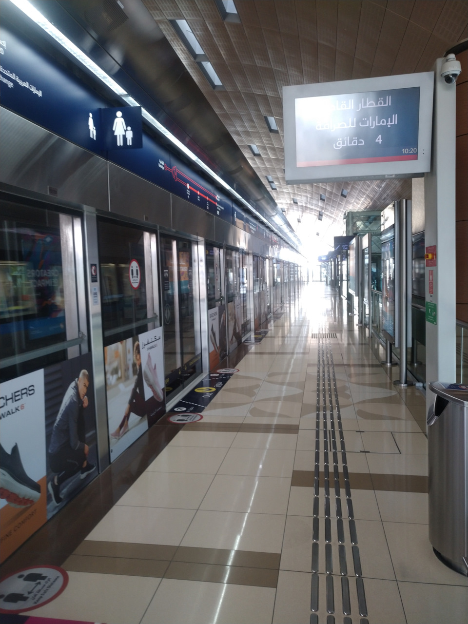 Метро это надземка. В прямом смысле. Это чистые, светлые, комфортные поезда, которые ездят по дорогам над землёй. Водителя нет. Совсем. Отправление каждые 4 минуты. Скорость движения приличная. Названия станций объявляют чётко, сначала на арабском, потом на английском. Дублируют текстом на табло. Единственный нюанс, если говорят «next station is…» это означает, что «эта остановка такая-то», не следующая.