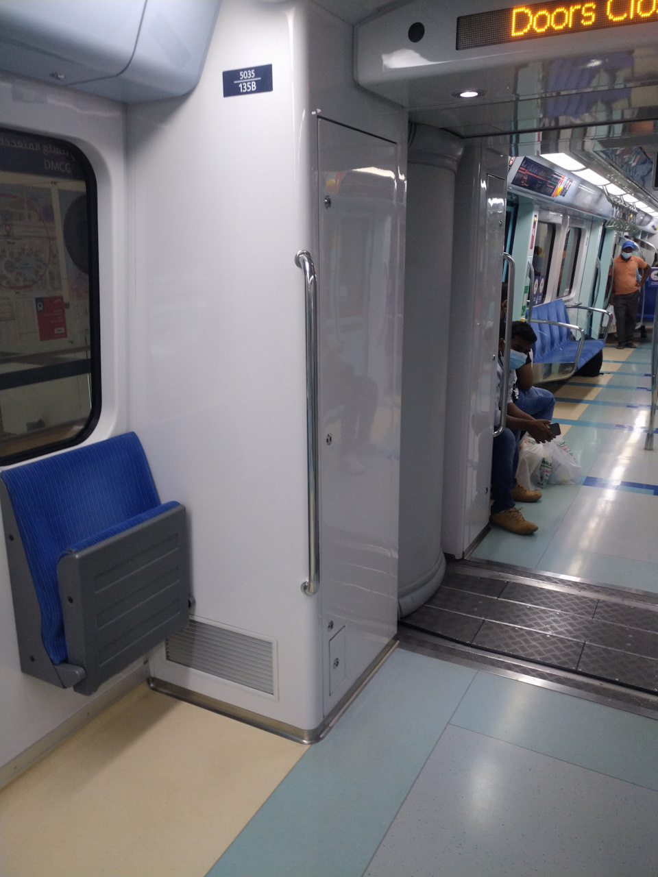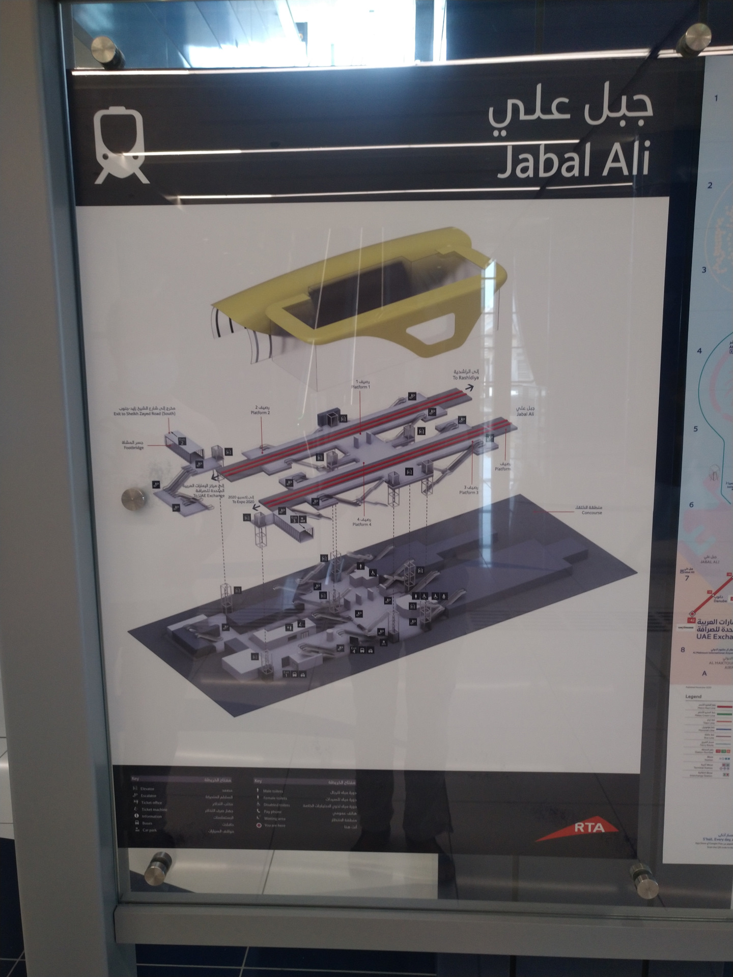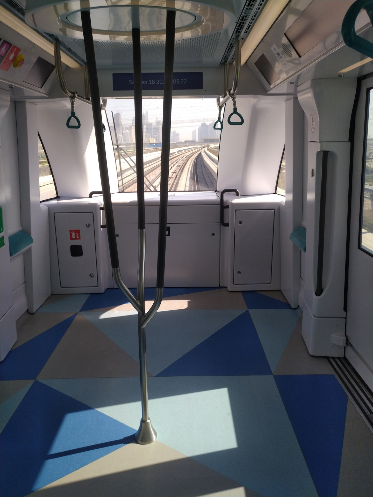Если нужны красивые фотографии с «места машиниста», то запоминайте, что когда едешь от периферии (ДжебелАли и прочая) к центру, первый — женский вагон. Когда обратно – первый Gold. В общем, если Вы не одинокий половозрелый мужчина – нет смысла переплачивать за Gold ради хороших кадров. Кстати, стоимость проезда зависит от станции. Допустим, от Ибн Батуты до Аль Умм Сейха 6 дирхам. При этом можно проехать все станции и вернуться. Главное не выйти в свет там, где не указано.