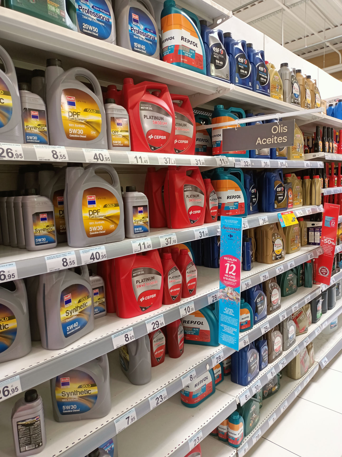 На всякий случай сфоткал для истории ассортимент масла и цены на него в Испании.