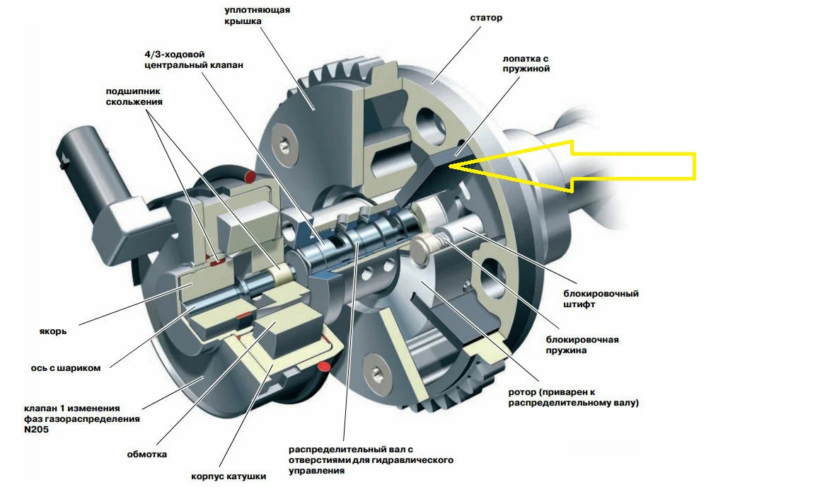 При износе лопаток регулятора появляется звук, вызванный свободным ходом лопаток от износа. Внешне это проявляется как «дизеление». Заменить регулятор фаз отдельно не получится, это единая деталь с распределительным валом, по очень не дешевой стоимости.