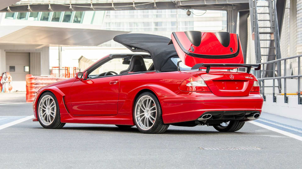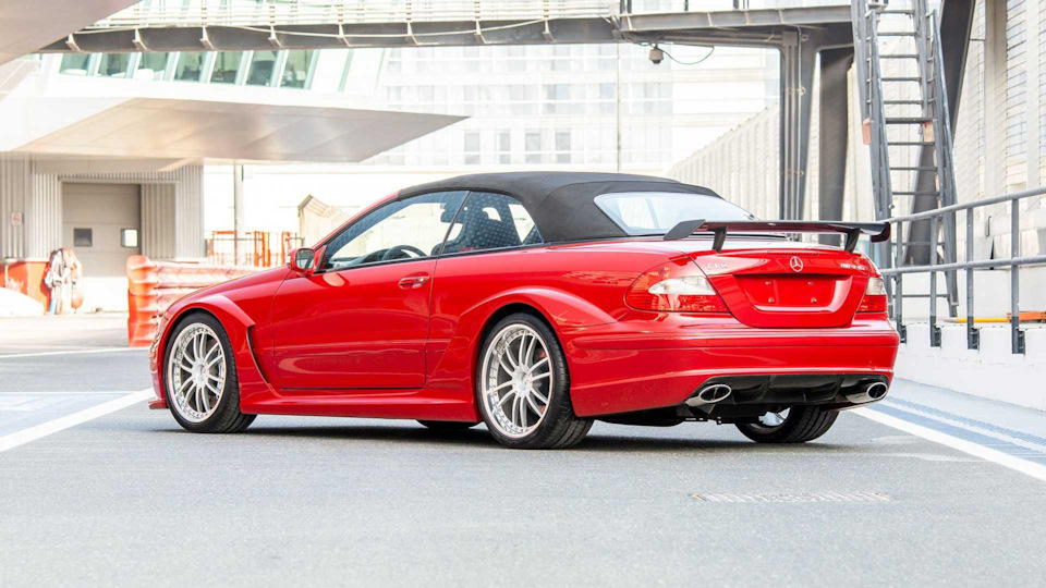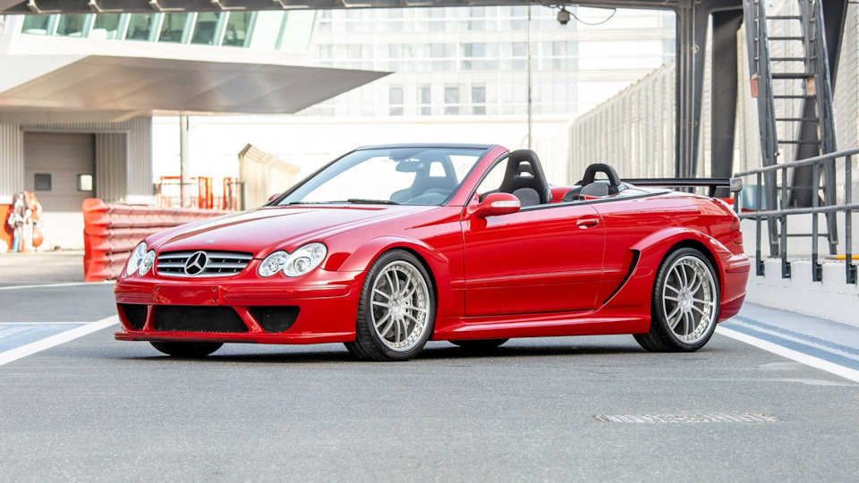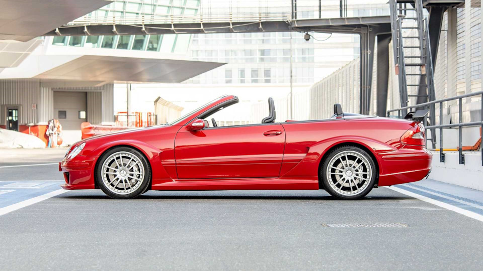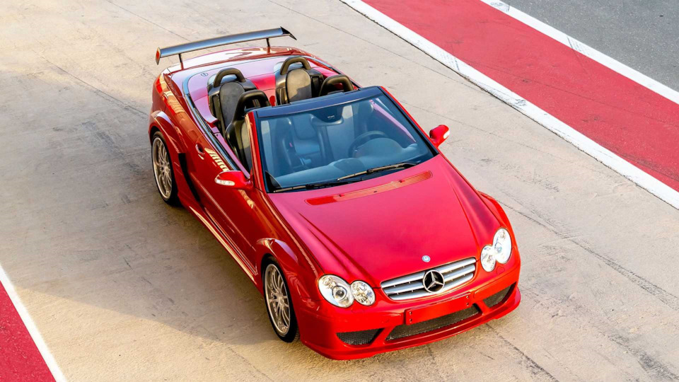 Глядя на этот яркий кабриолет с раздутыми арками, отполированными до блеска дисками и большим чёрным антикрылом, можно ошибочно предположить, что перед вами результат какого-то безумного тюнинга. Но не дайте себя обмануть: именно в таком виде автомобиль сошёл с конвейера в далёком 2006 году. Многие коллекционеры мечтают о нём больше, чем о суперкаре SLR McLaren и ещё более редком SLS AMG Black Series, потому что за 3 года производства компания Mercedes-Benz выпустила всего 100 модификаций CLK DTM AMG в обличье «купе» и 80 — с кузовом «кабриолет». Версий с мягким верхом в цвете Fire Opel Red построено и вовсе лишь 5…