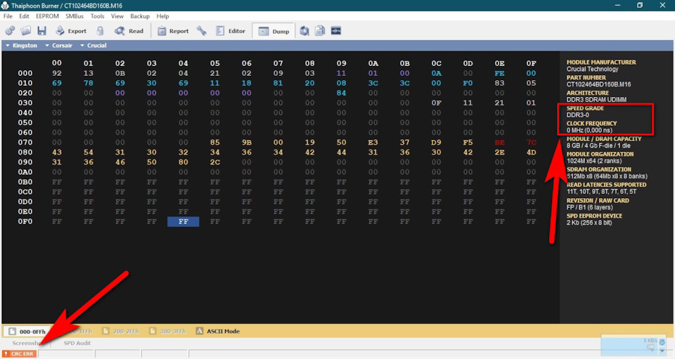 Вижу что Тайфун ругается на ошибку контрольной суммы, а также на отсутствие в прошивке заданного значения Clock frequency. Открываю стандарт JEDEC на DDR3 и вижу, что для расчета частоты отсутствует требуемое значение по адресу 0x0Bh — там стоит «0»dec. Меняю его на «8»dec, пересчитываю на всякий случай CRC(она совпала с изначальной), снова открываю в Тайфуне и вижу, что скорость теперь отображается правильно и КС — верная. Прошиваю исправленные данные в SPD, устанавливаю в комп… Запускаю, проверяю, всё — отлично!