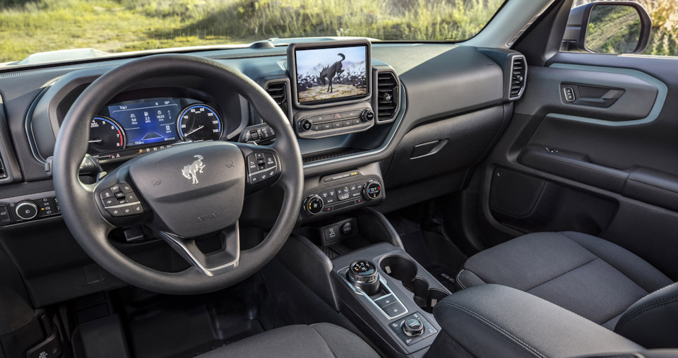 Первым на рынок вышел более доступный Bronco Sport. Название не должно вводить в заблуждение, ведь это обычный кроссовер. Хотя нет, это настоящий кроссовер — такой, каким ему и положено быть. Уже «в базе» он имеет полноприводную трансмиссию с муфтой подключения задней оси и клиренс 198 мм, а с опциональными внедорожными колесами внешним диаметром 29 дюймов дорожный просвет увеличивается до уже вполне взрослых 223 мм. Внедорожный круиз-контроль Trail Control работает на скоростях до 32 км/ч, а так называемый «ползучий» режим позволяет передавать тягу с коэффициентом 18:1. За безопасность отвечает комплекс Ford Co-Pilot360.